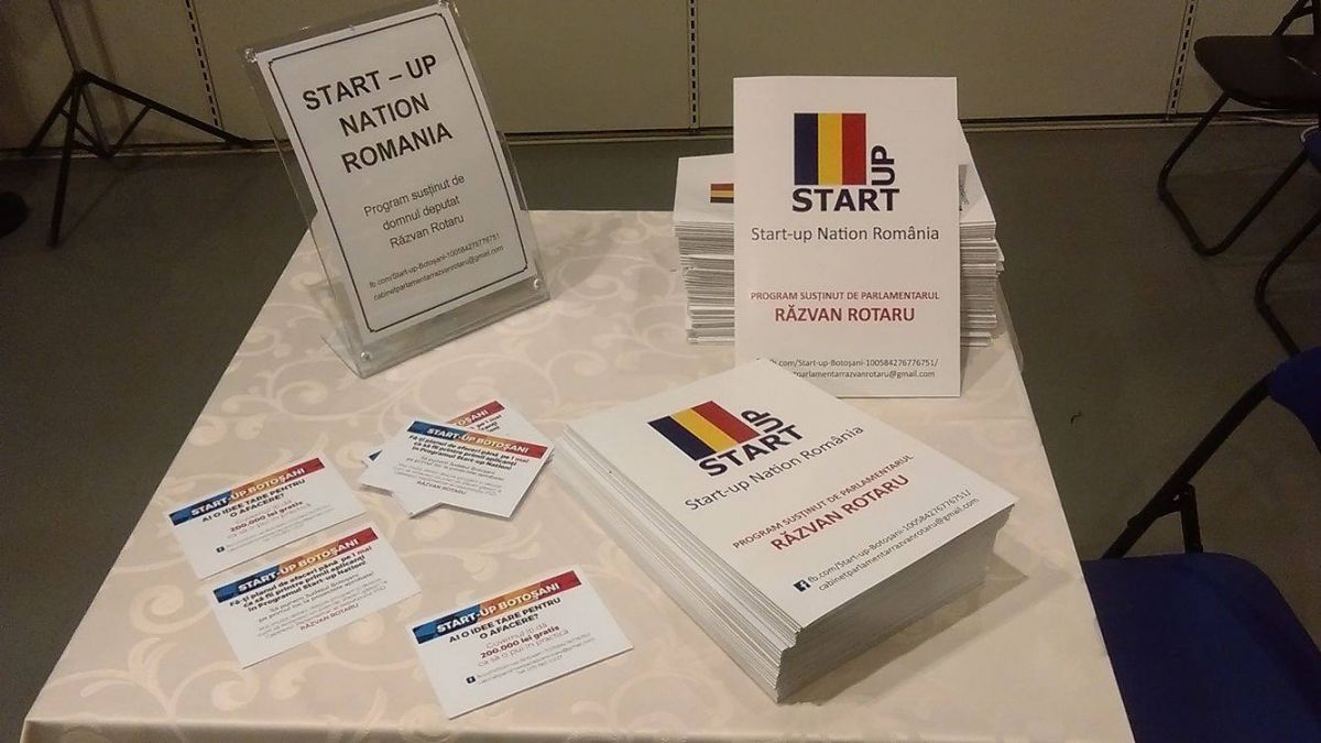 „Am fost invitat de reprezentanții Agenției Județene pentru Ocuparea Forței de Muncă Botoșani să prezint normele metodologice de aplicare a programului pentru stimularea înfiinţării de noi întreprinderi mici și mijlocii. Peste 100 de tineri au vizitat standul pe care l-am avut la dispoziție. Voi organiza în continuare dezbateri și consultări în județul Botoșani pentru a convinge cât mai mulți tineri botoșăneni să aplice la Start-up Nation-România. După sărbătorile de Paște voi organiza sesiuni publice de informare la care voi invita antreprenorii din diverse domenii economice pentru a le prezenta botoșănenilor modele de planuri de afaceri. Orice tânăr care își dorește să deschidă un start-up poate să vină zilnic la cabinetul meu parlamentar din cadrul Prefecturii Botoșani pentru a lua materiale de informare și a afla detalii cu privire la acest program sau poate vizita pagina de facebook dedicată acestui proiect: https://www.facebook.com/search/top/?q=start-up%20botoșani”, a explicat Răzvan Rotaru.