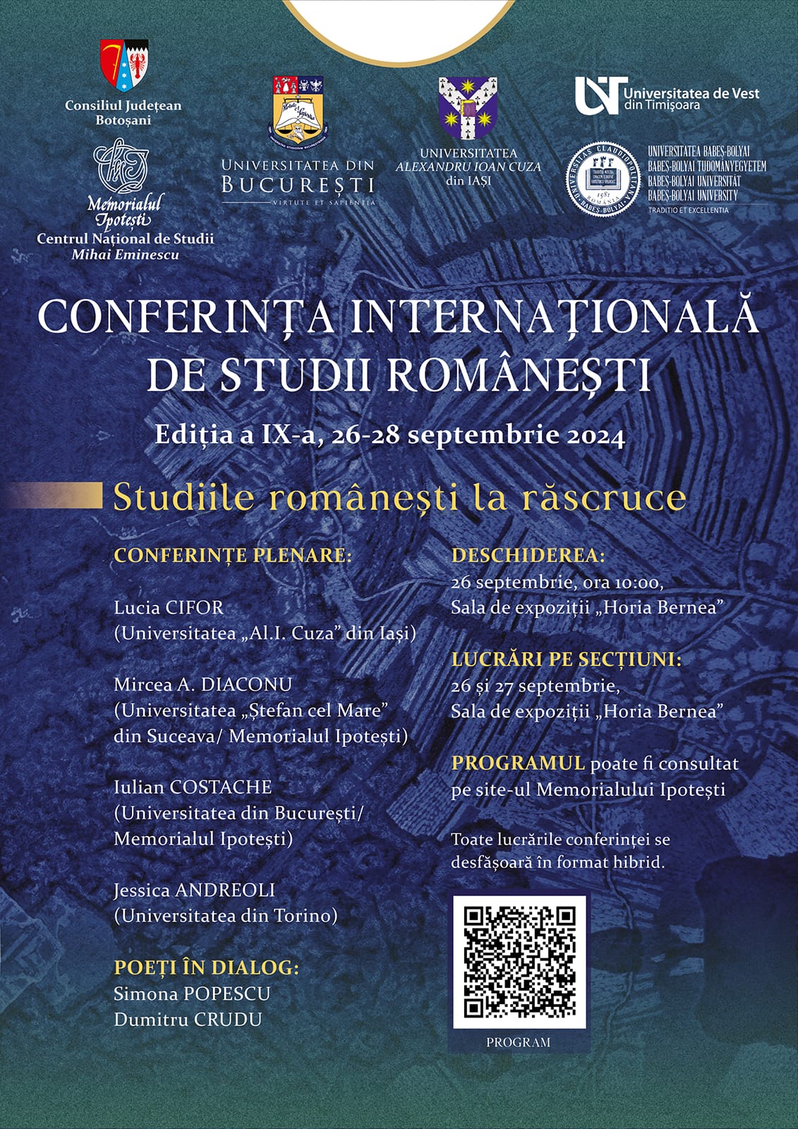 Programul poate fi consultat pe site-ul Memorialului Ipotești: https://www.eminescuipotesti.ro/conferintainternationaladestudiiromanesti2024ed.a9-a.htm