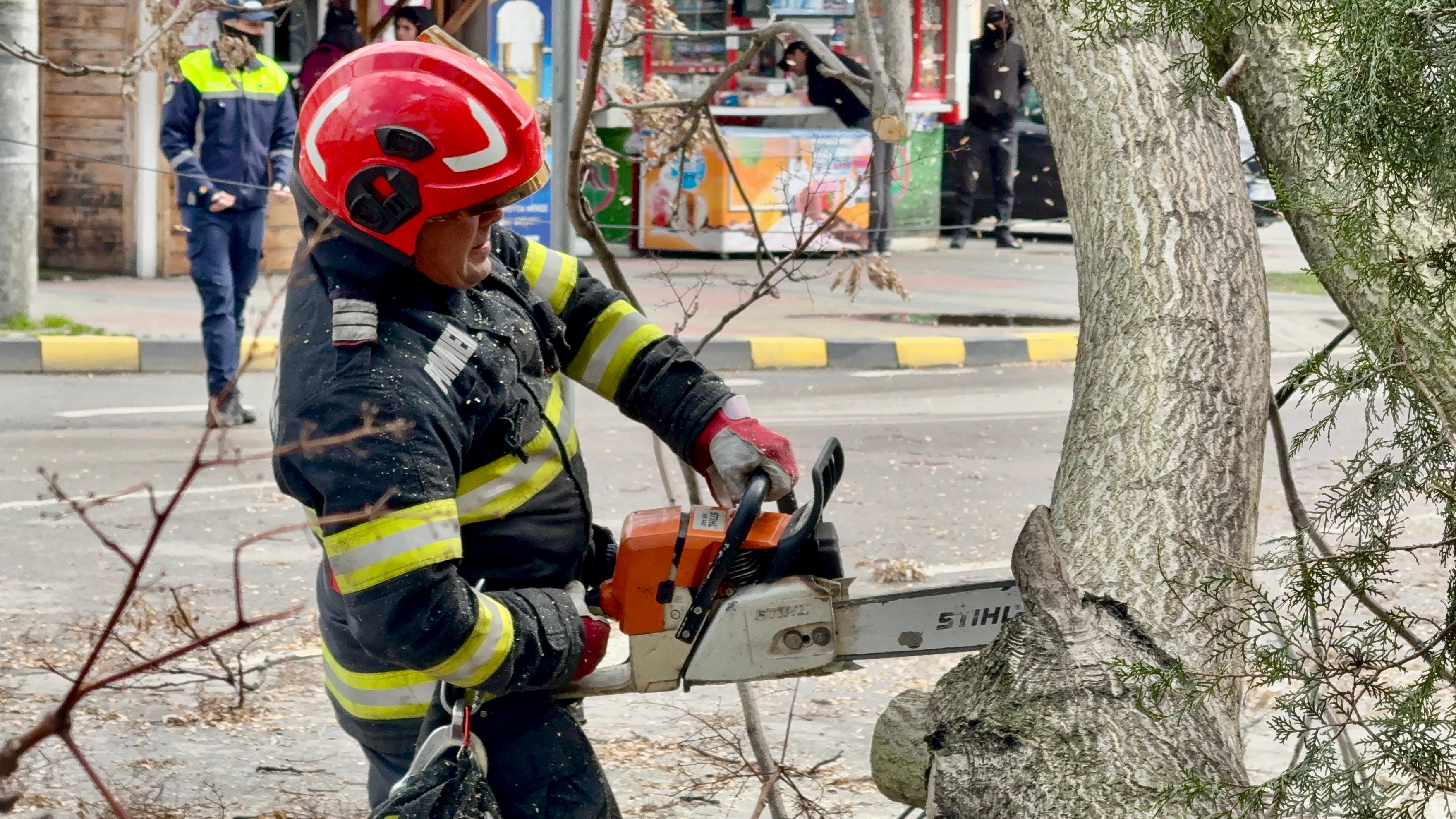 Primele intervenții au avut loc, în urmă cu puțin timp. Bucăți de tencuială de pe fațada unui bloc de pe Bulevardul George Enescu au fost desprinse de vânt și puteau să cadă, în orice moment, peste trecători și mașinile parcate în zonă.