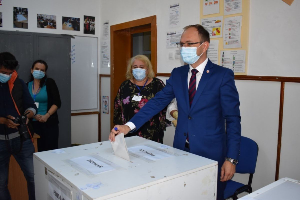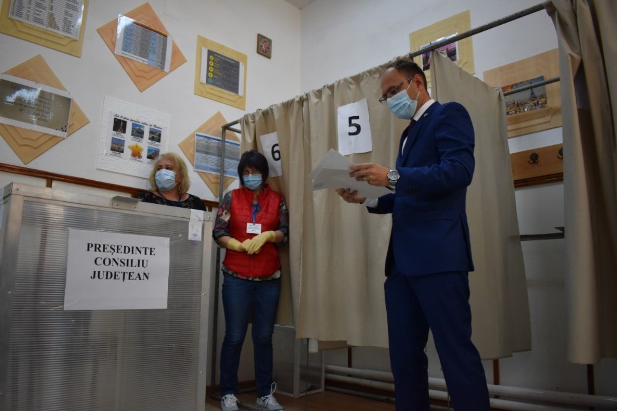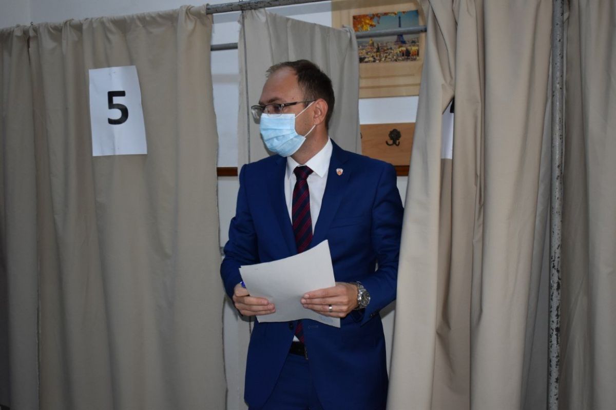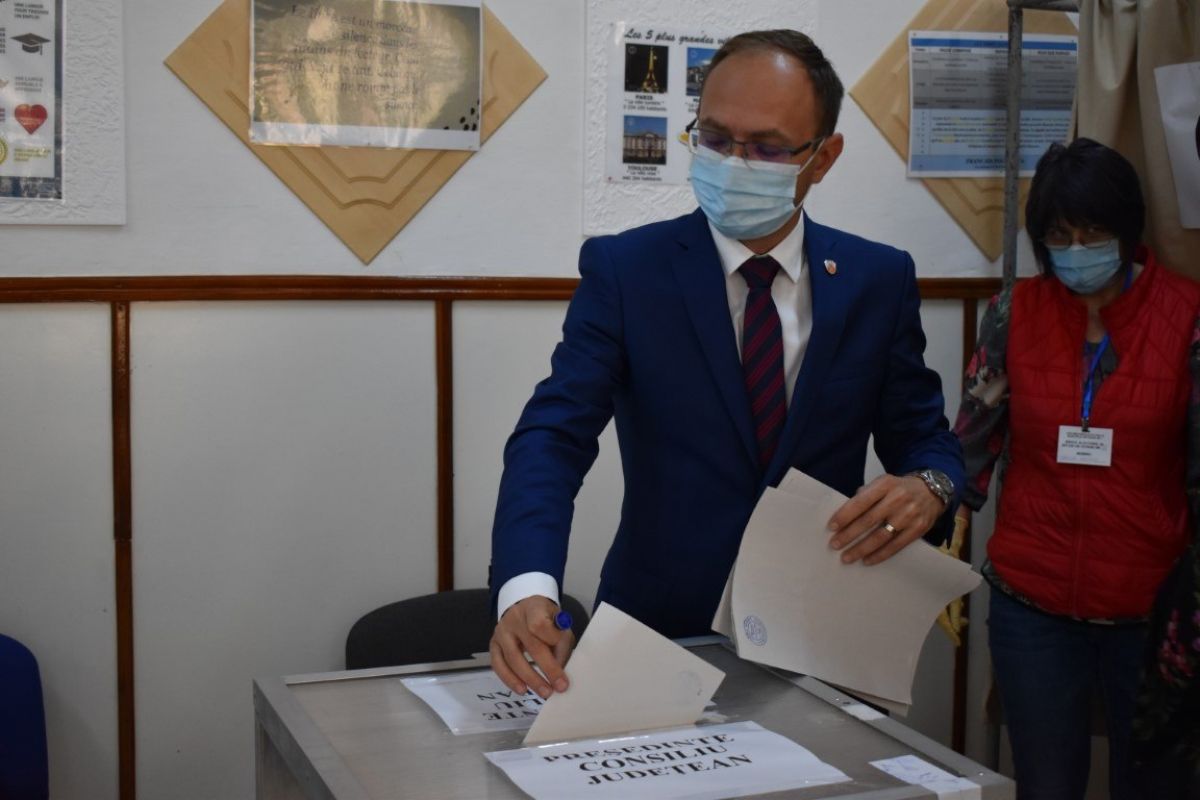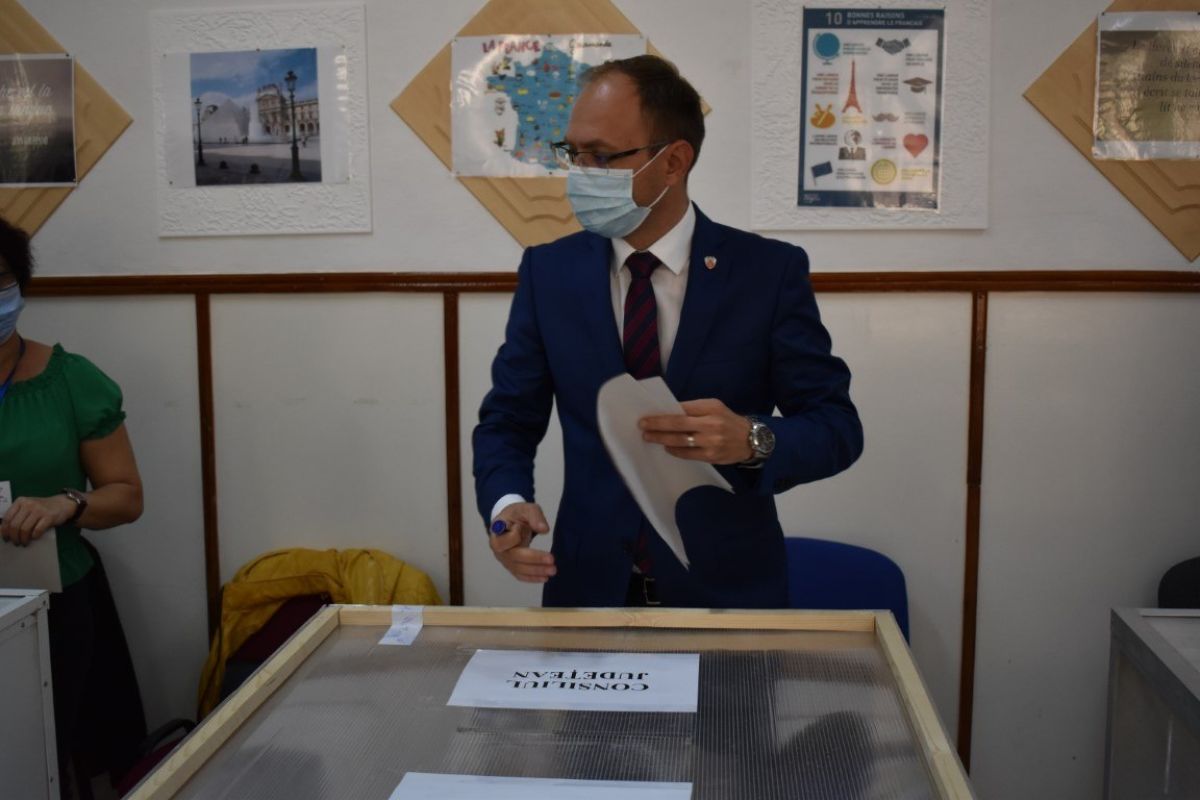 Candidatul la funcția de primar al municipiului reședință de județ din partea PSD, Cosmin Andrei, a venit la vot alături de soție și băiat.