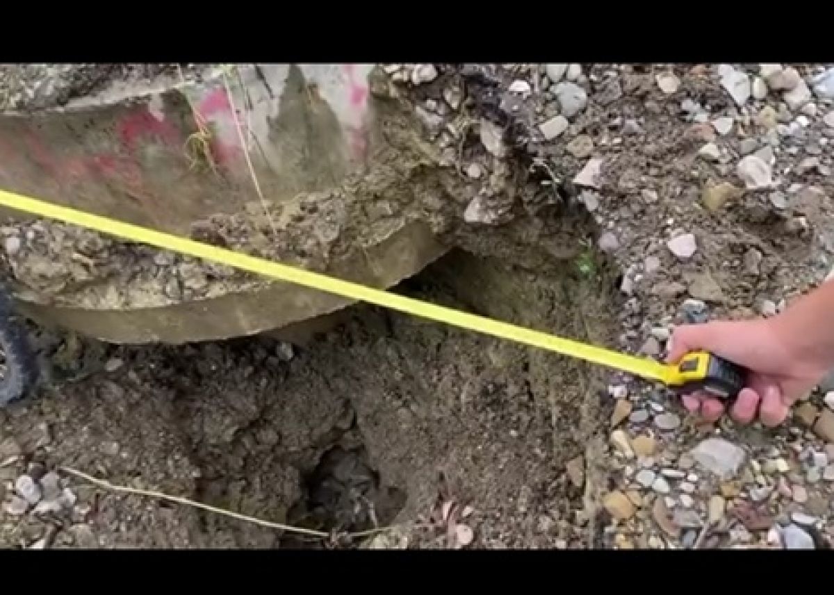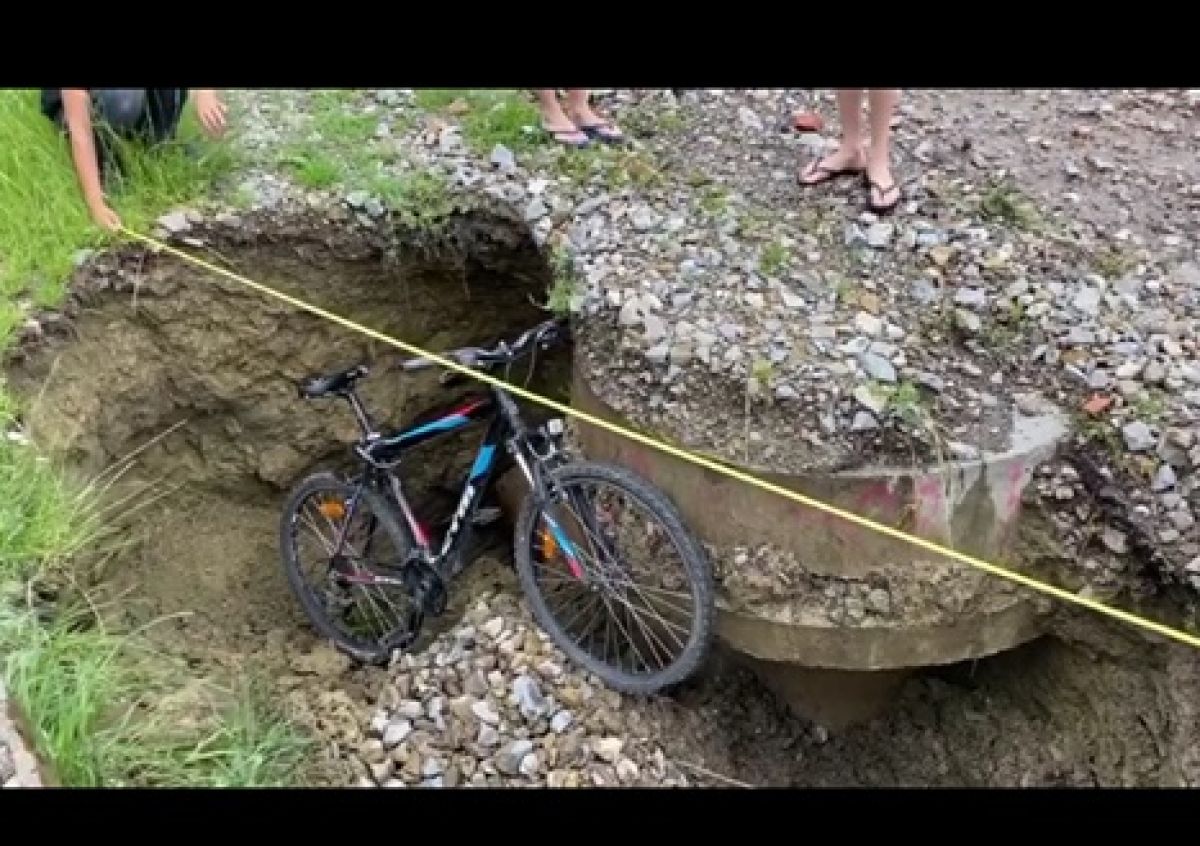 Cea care s-a ivit în ultimele zile pare să aibă aproape 3 metri lățime și o adâncime de aproximativ 2 metri. O bicicletă a încăput ușor în craterul nou format.