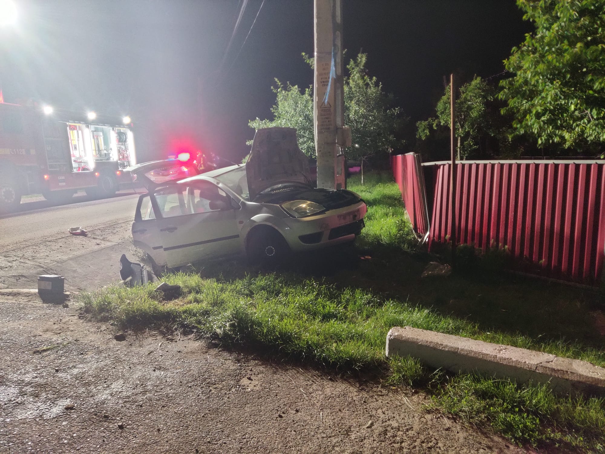 Culmea inconștienței: Un tânăr fără permis s-a urcat cu un copil într-o mașină fantomă și s-a izbit într-un cap de pod