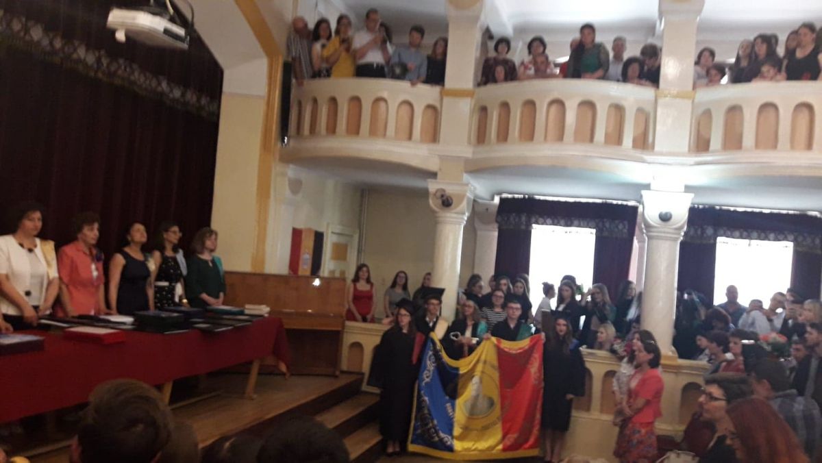 Aula Magna a fost luată cu asalt de părinţi, prieteni, profesori şi mai ales de absolvenţii ce s-au auzit strigaţi la catalog pentru ultima dată.