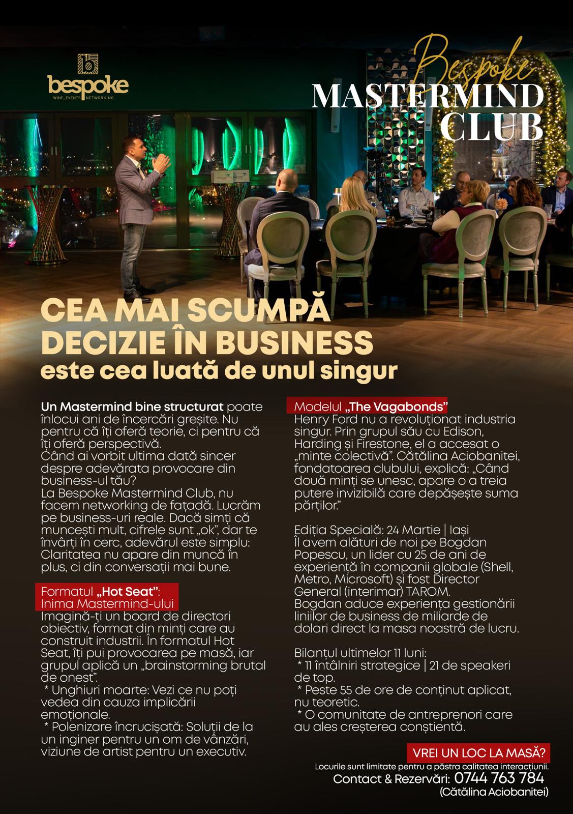 Pentru că Bespoke Mastermind Club este singurul spațiu unde antreprenoriatul se întâlnește cu autenticitatea crudă. Împreună cu Darius Marza și Alexandru Holicov, vom diseca strategiile care transformă blocajele financiare în motoare de creștere.