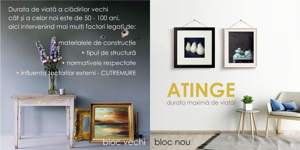 Durata de viață a clădirilor vechi cât și a celor noi este de 50-100 ani, aici intervenind mai mulți factori legați de materialele de construcție, tipul de structură, normativele respectate, influența factorilor externi - CUTREMURE.