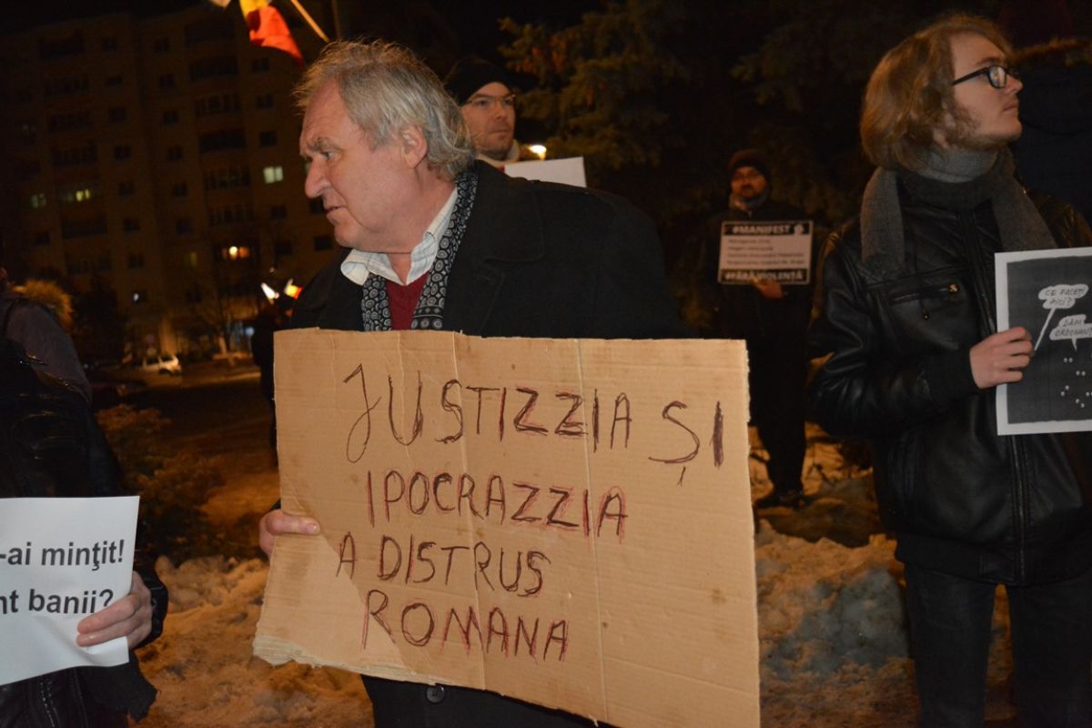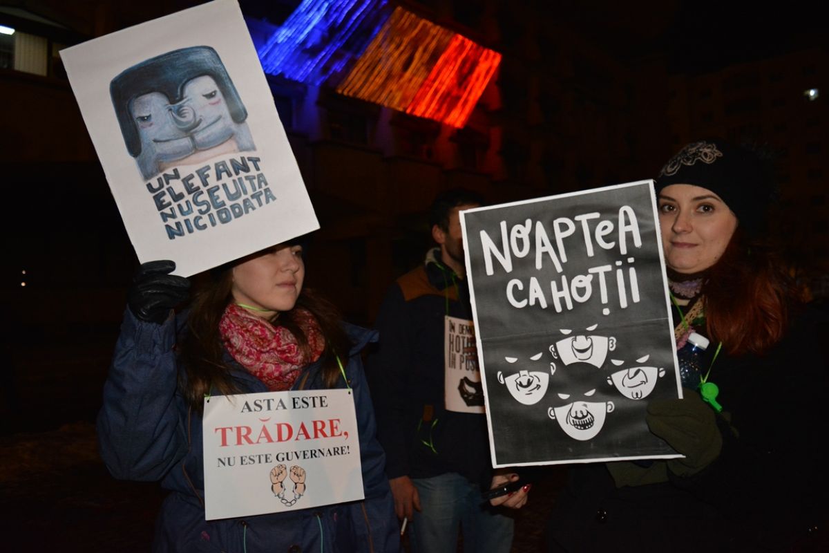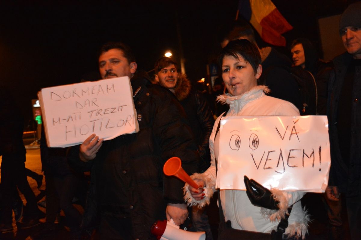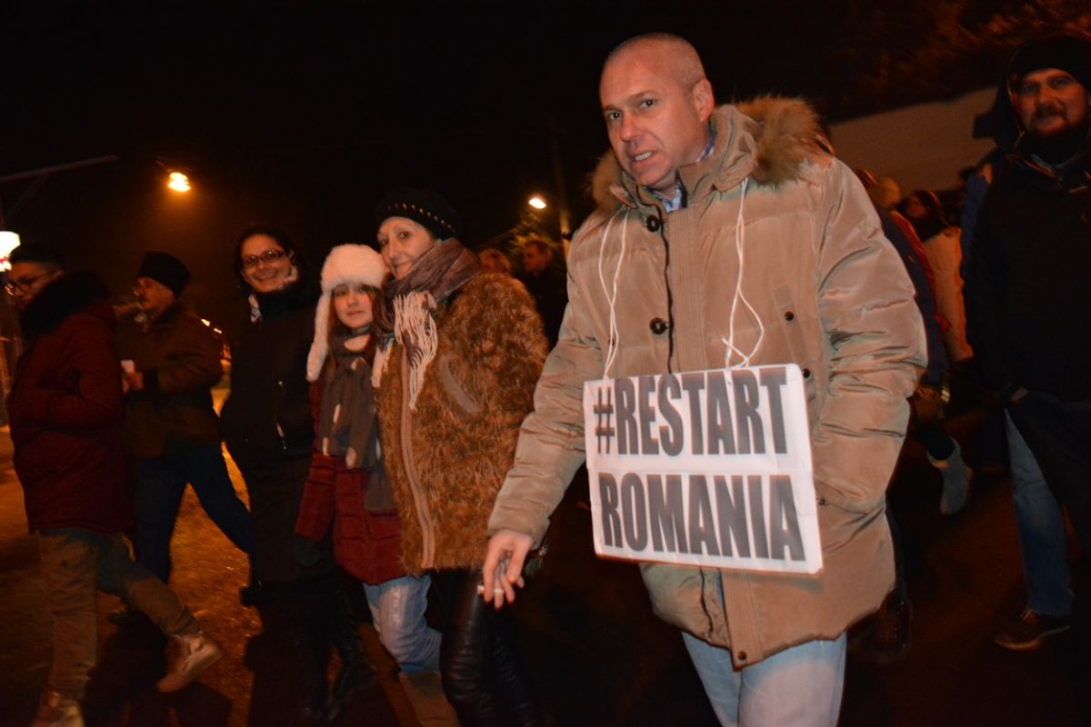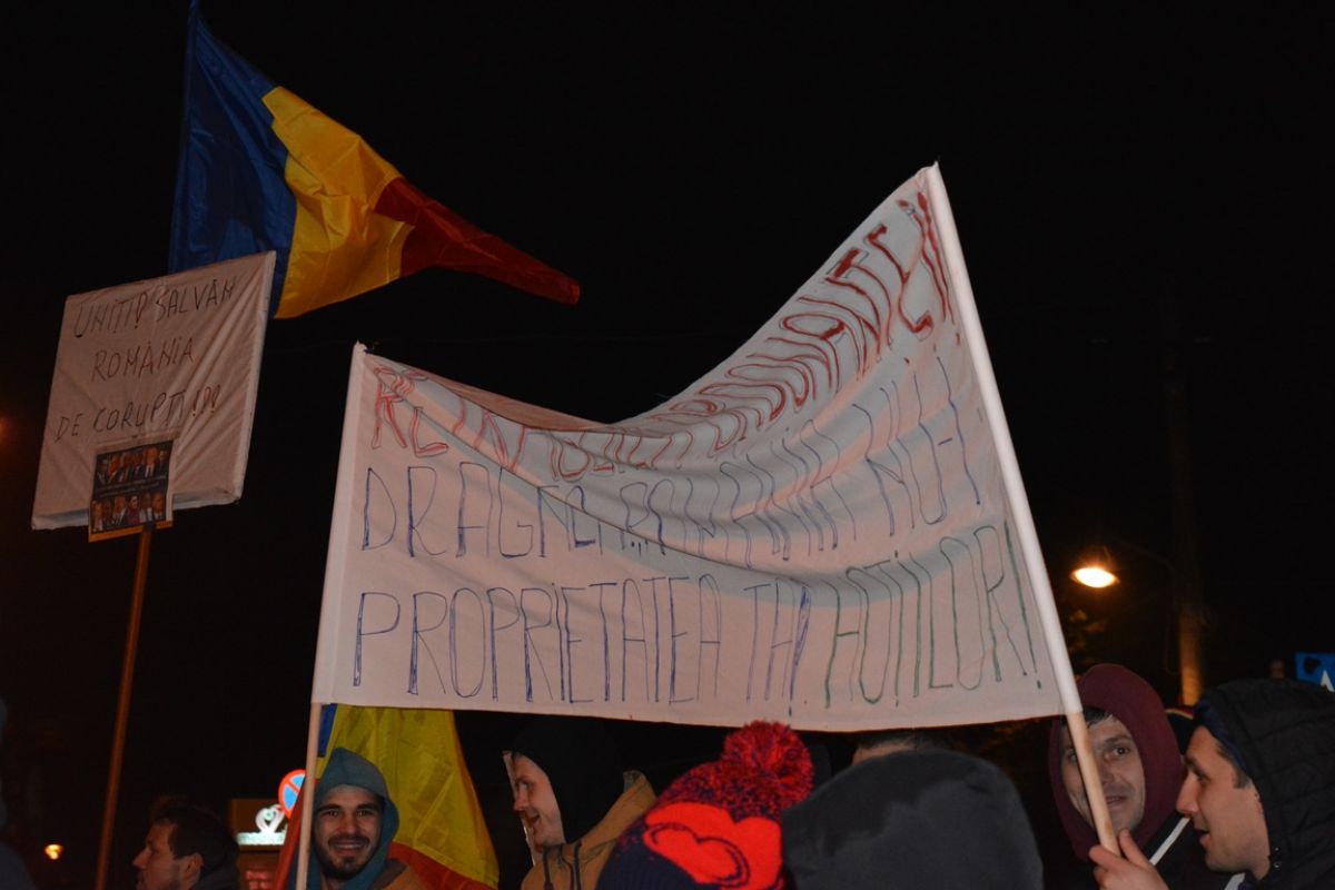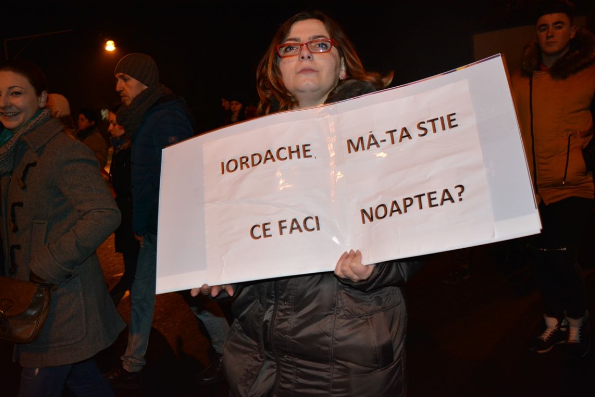 Tineri și bătrâni, copii și adolescenți, au mărșăluit prin oraș agitând pancarte cu mesaje care mai de care mai amuzante și ironice la adresa Guvernului care a adoptat OUG 13/2017 prin care Codul Penal s-a modificat în favoarea politicienilor cu dosare penale.