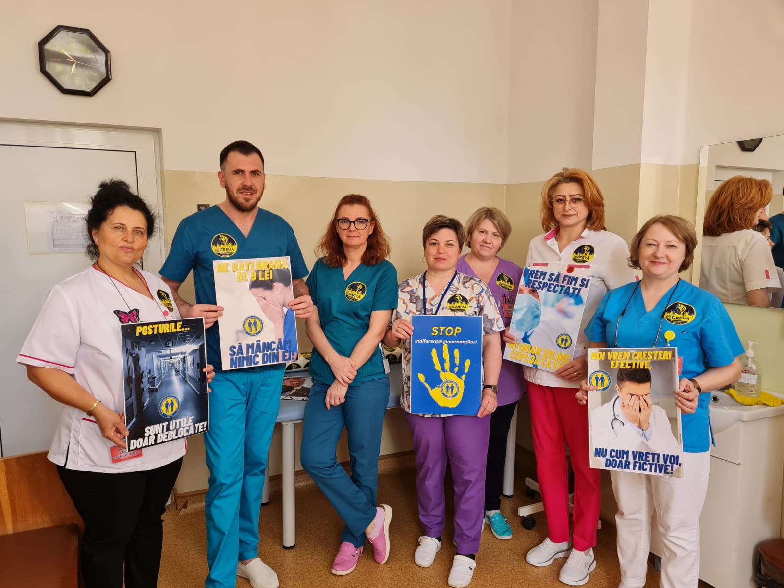 Salariații au ieșit în curtea unităților medicale cu pancarte în mâini cu diferite mesaje precum: Ne dați hrană de 9 lei/ Să mâncăm nimic din ei; STOP indiferenței guvernanților, Vrem să fim și respectați/ Nu doar zilnic exploatați