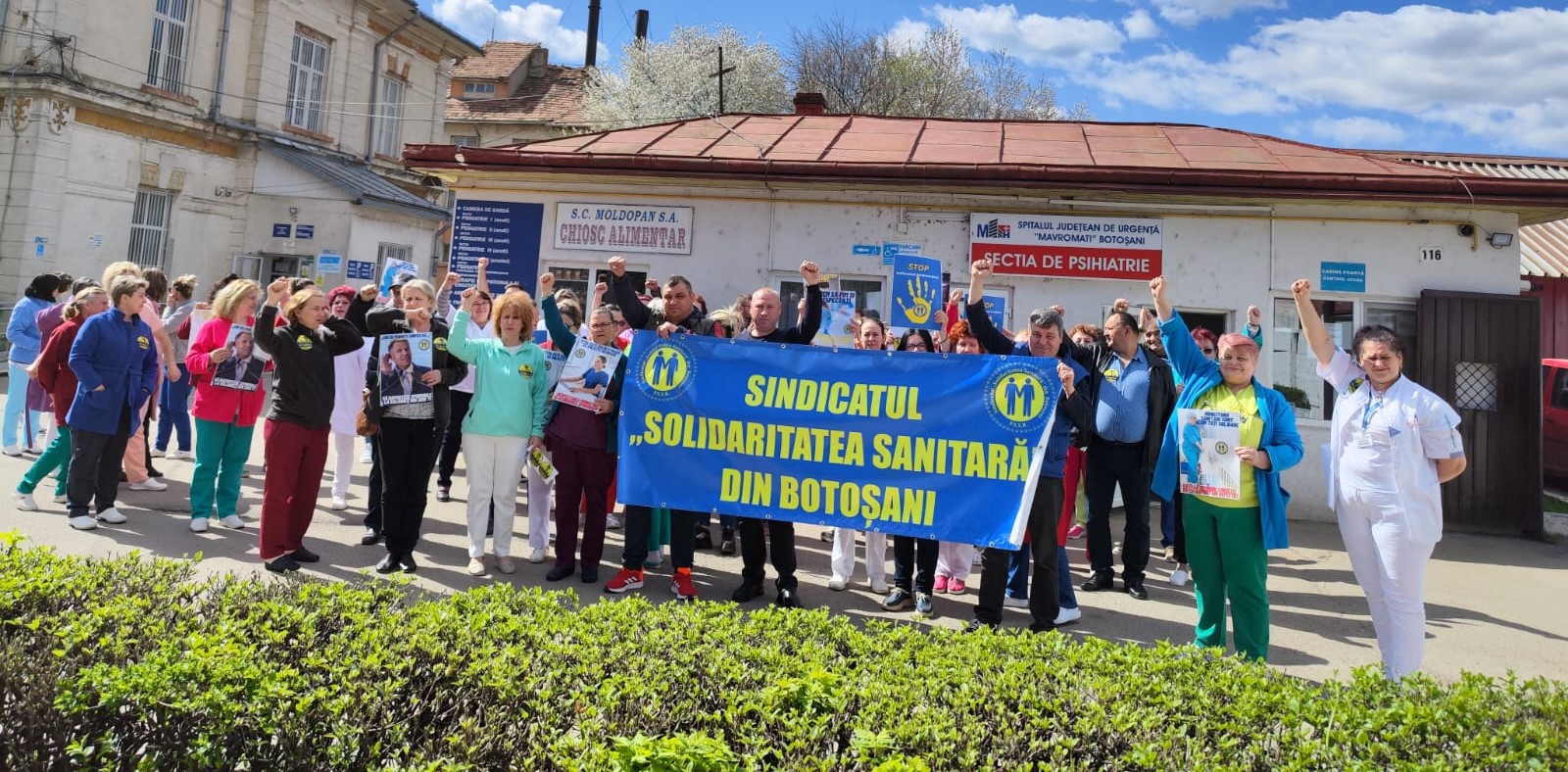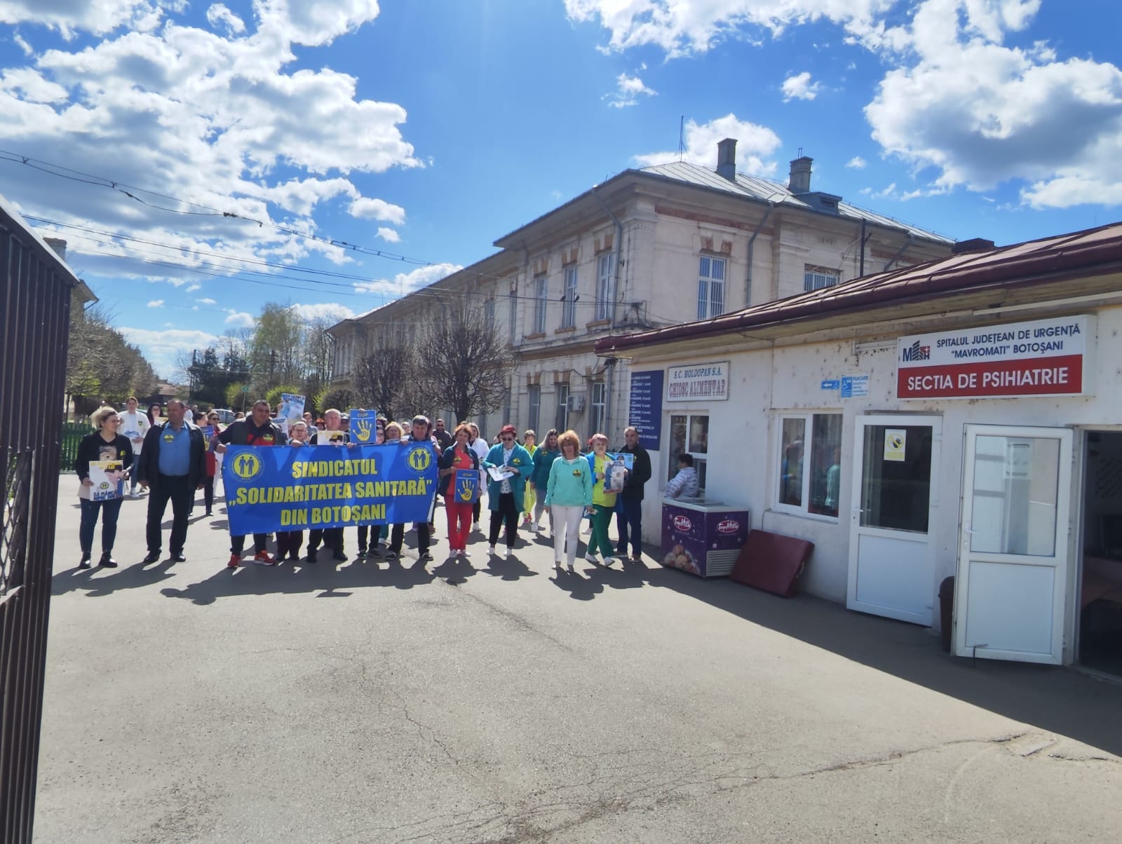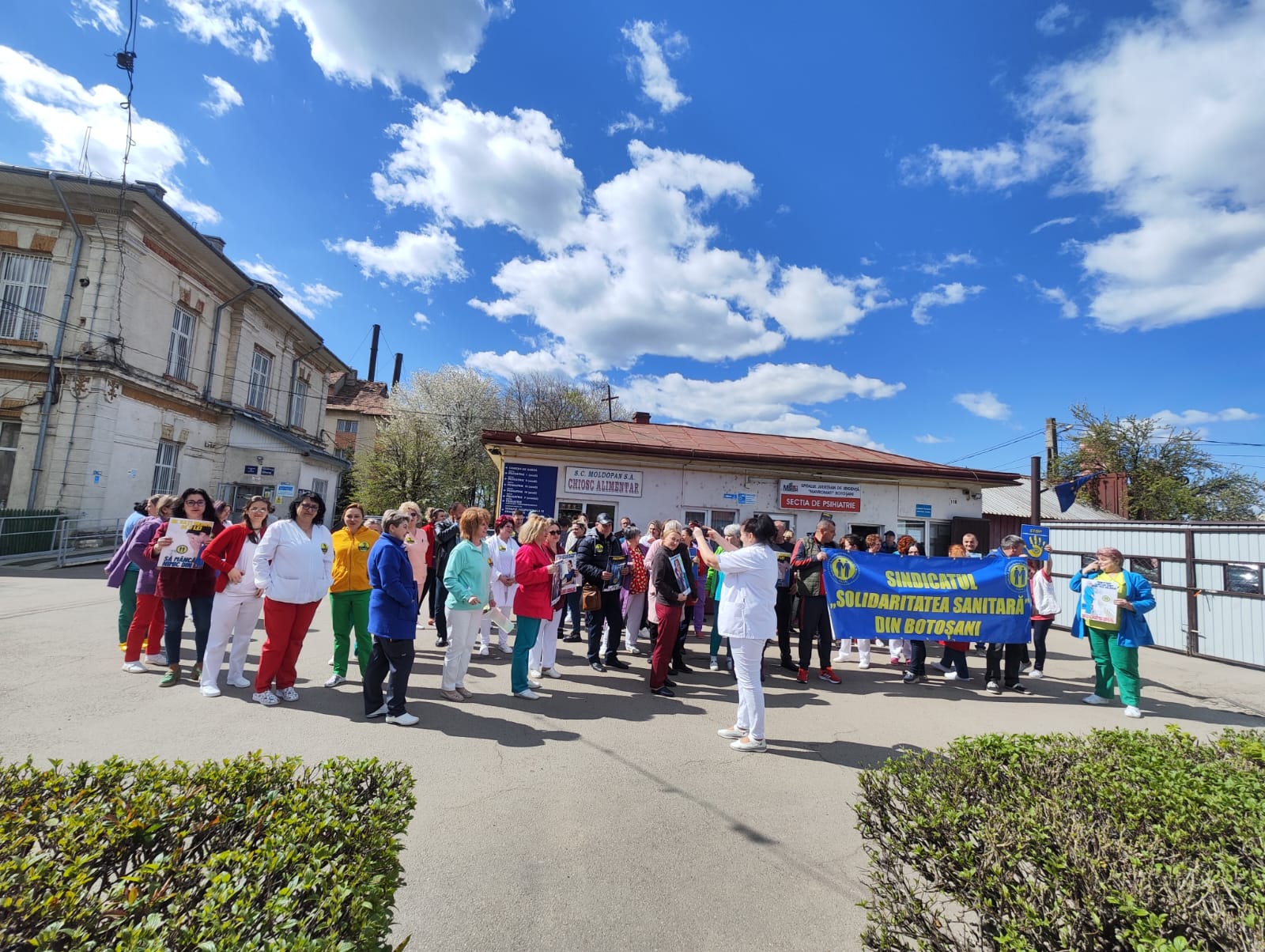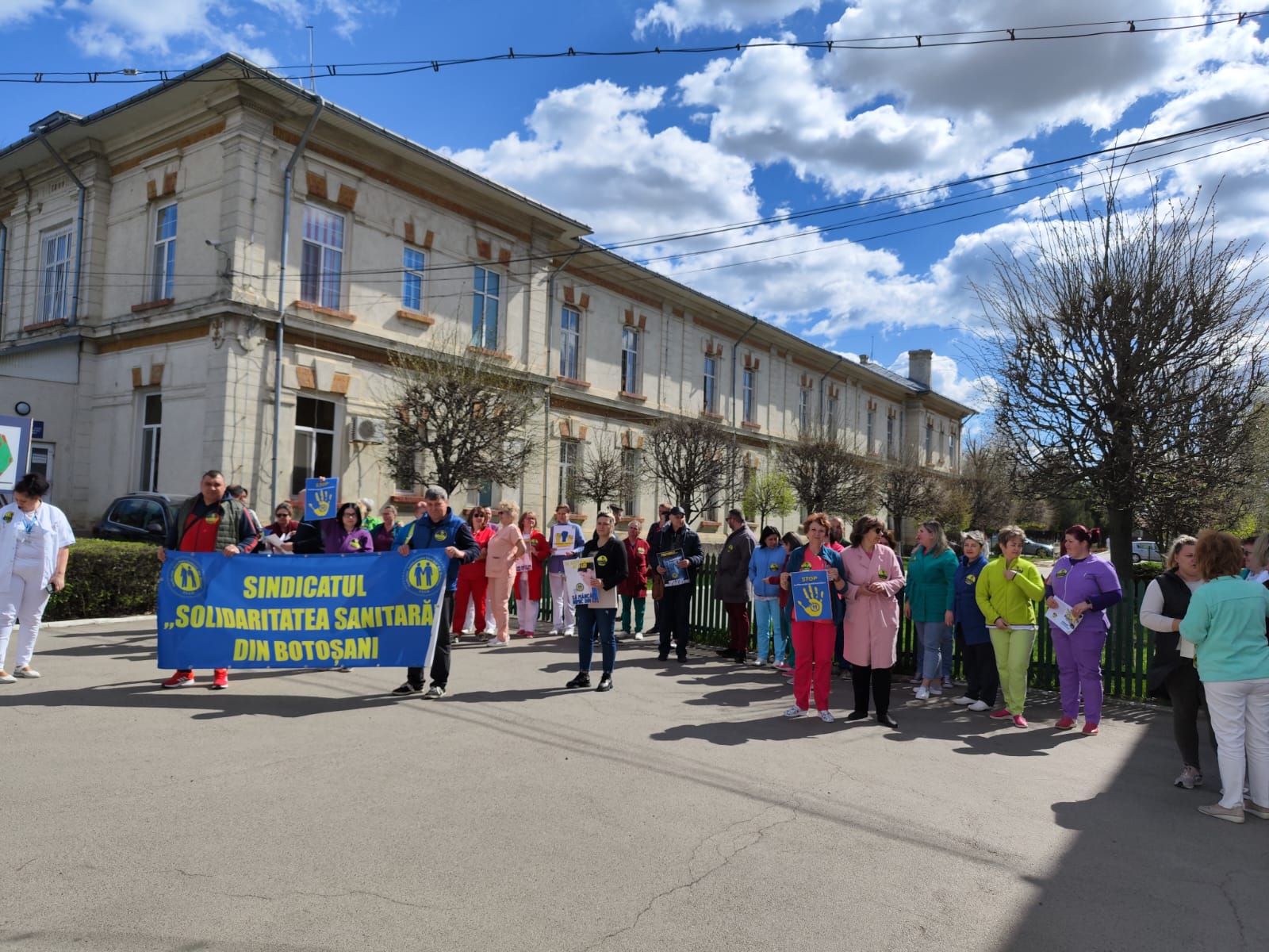 Iar cadrele medicale care sunt reprezentate de Sindicatul Solidaritatea Sanitară Botoșani au purtat astăzi în piept bulină cu „grevă de avertisment”