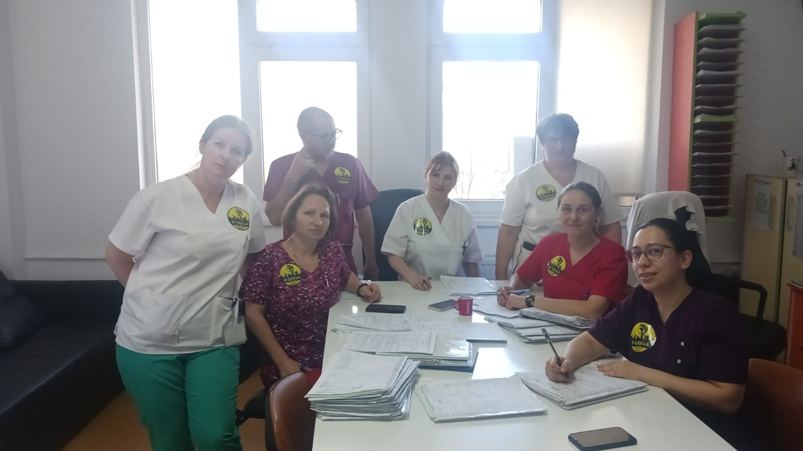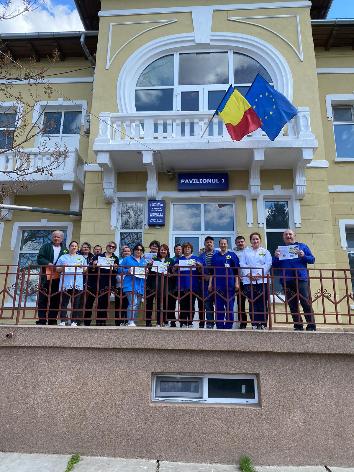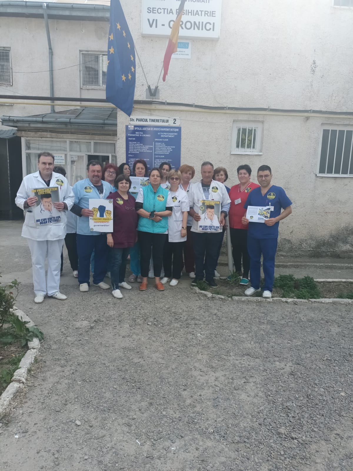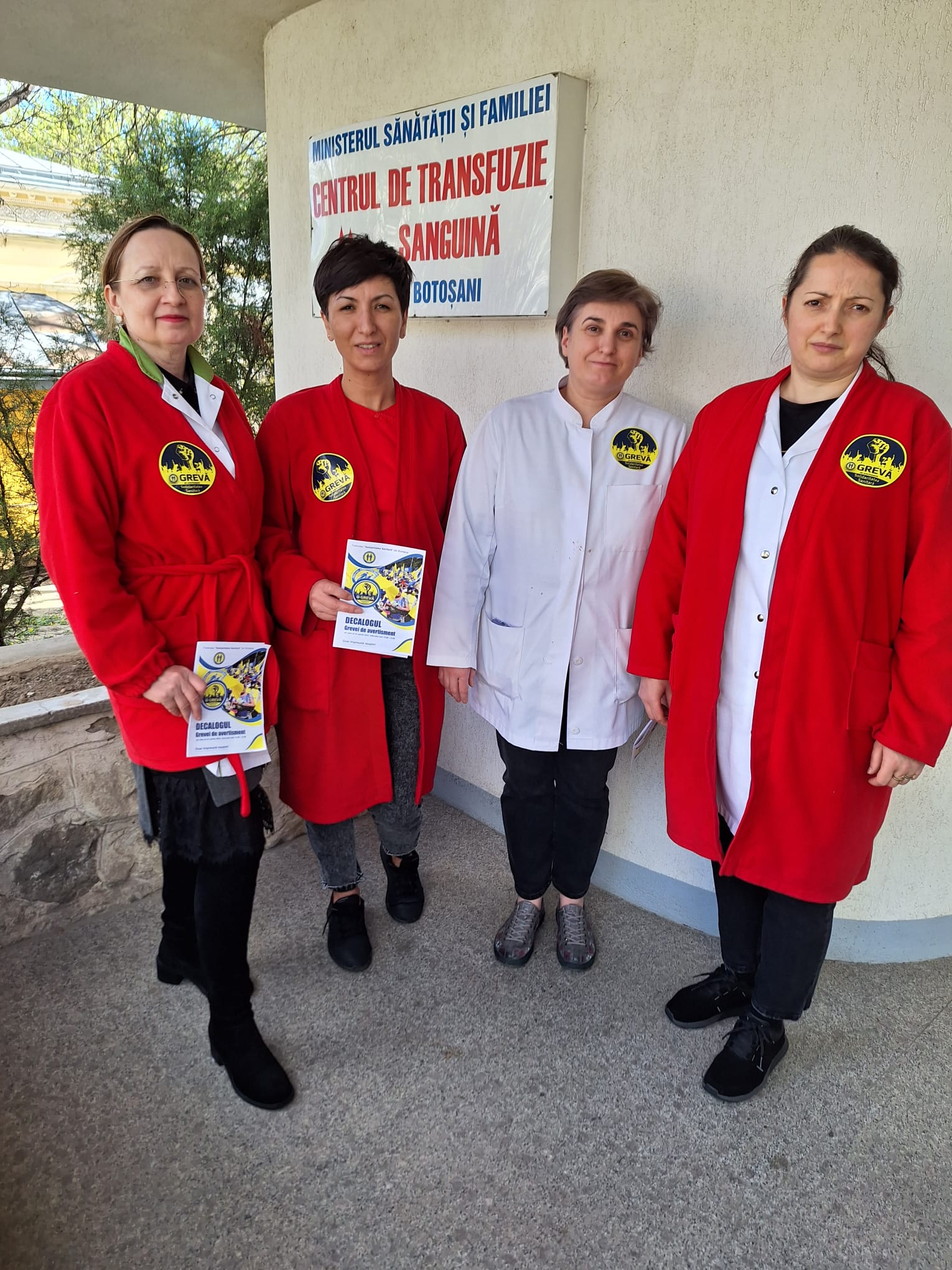 Iar cadrele medicale care sunt reprezentate de Sindicatul Solidaritatea Sanitară Botoșani au purtat astăzi în piept bulină cu „grevă de avertisment”