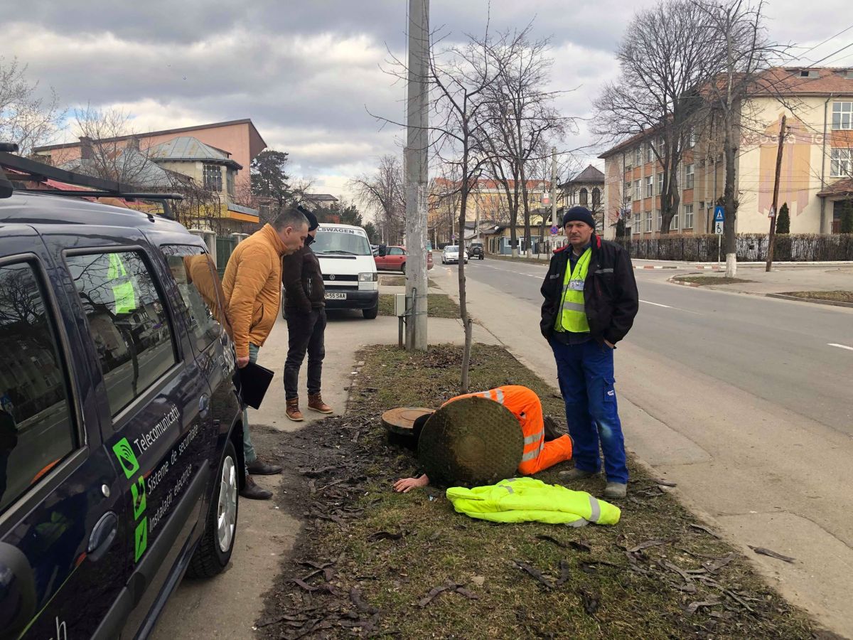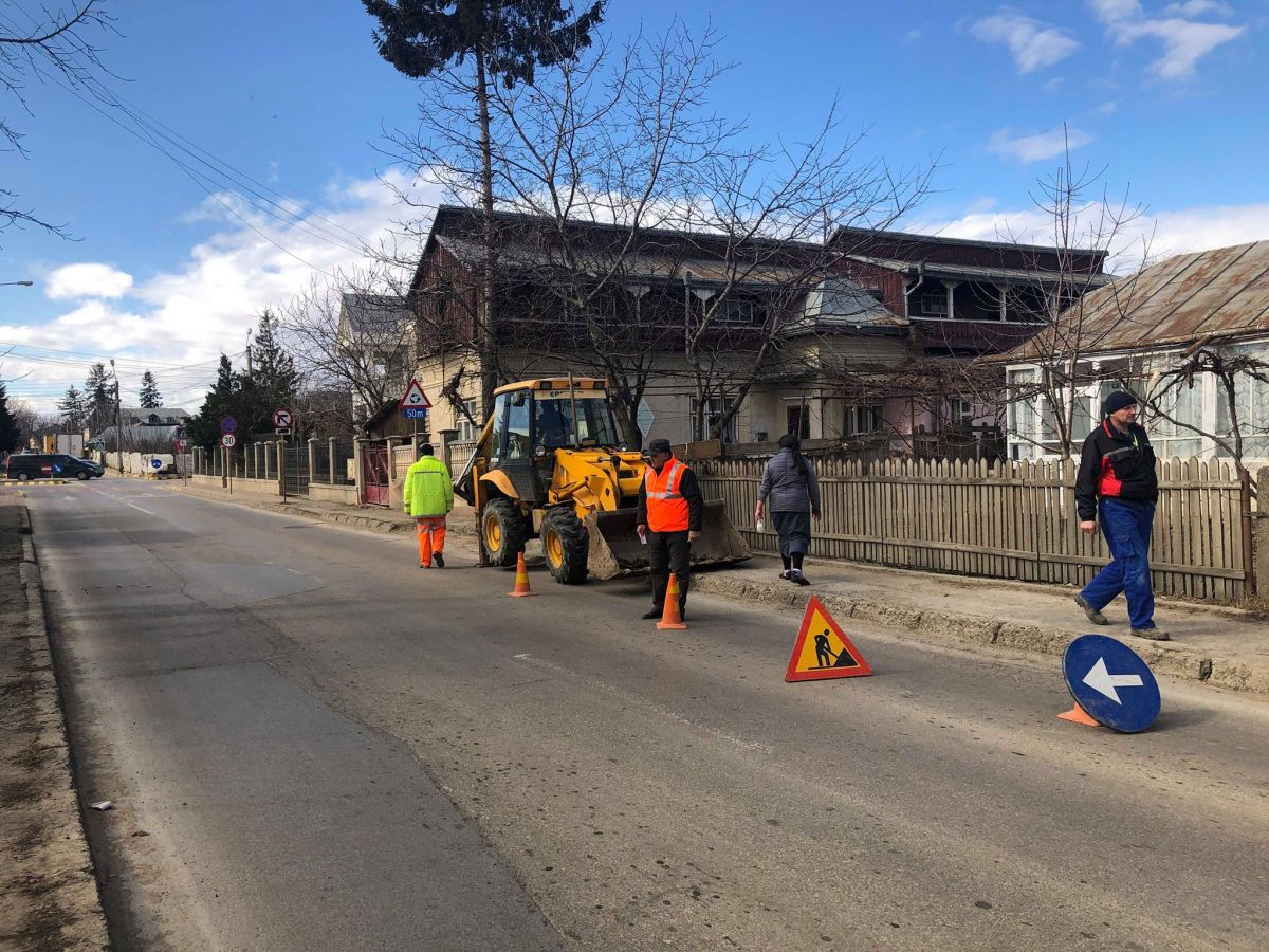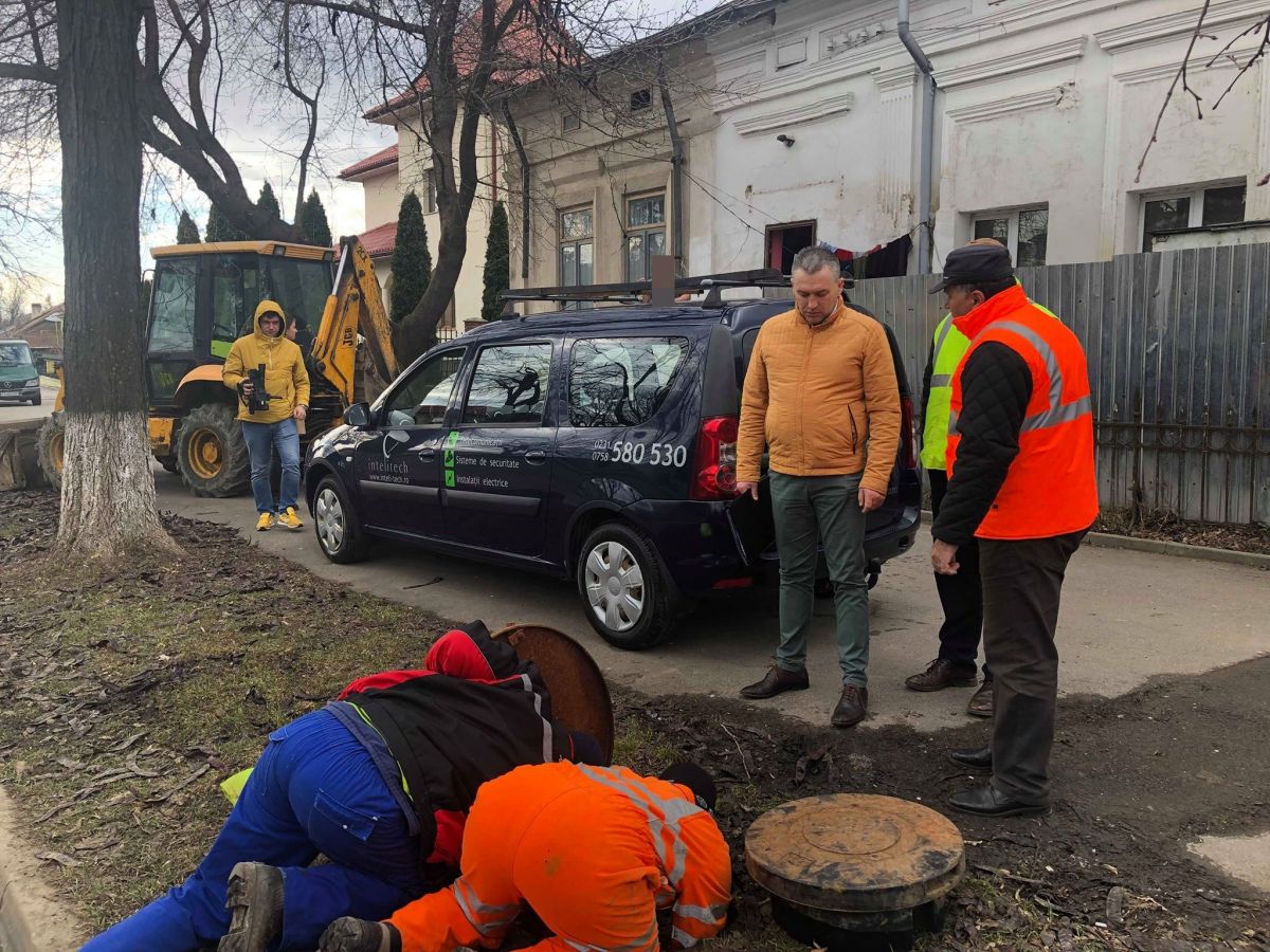 Circulația pe strada Petru Rareș a fost deviată pe un singur sens, întrucât canalizarea se afla chiar pe mijlocul drumului.