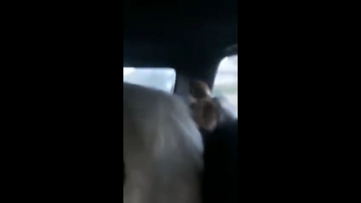 Are două vite în mașină și circulă pe drumurile publice. Ca și cum nu era de ajuns, șoferul are și telefonul în mână și, bineînțeles, nu poartă centura de siguranță. Din imagini se observă și faptul că parbrizul mașinii în care se află cele două animale este spart.