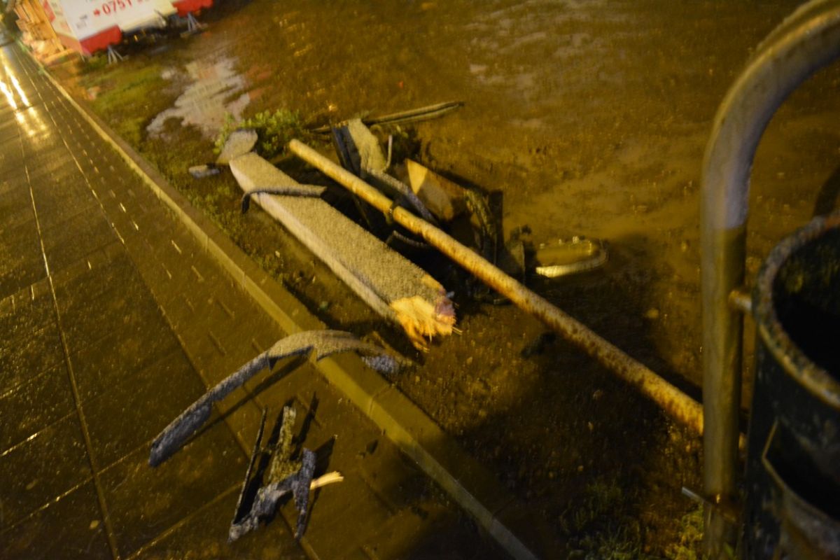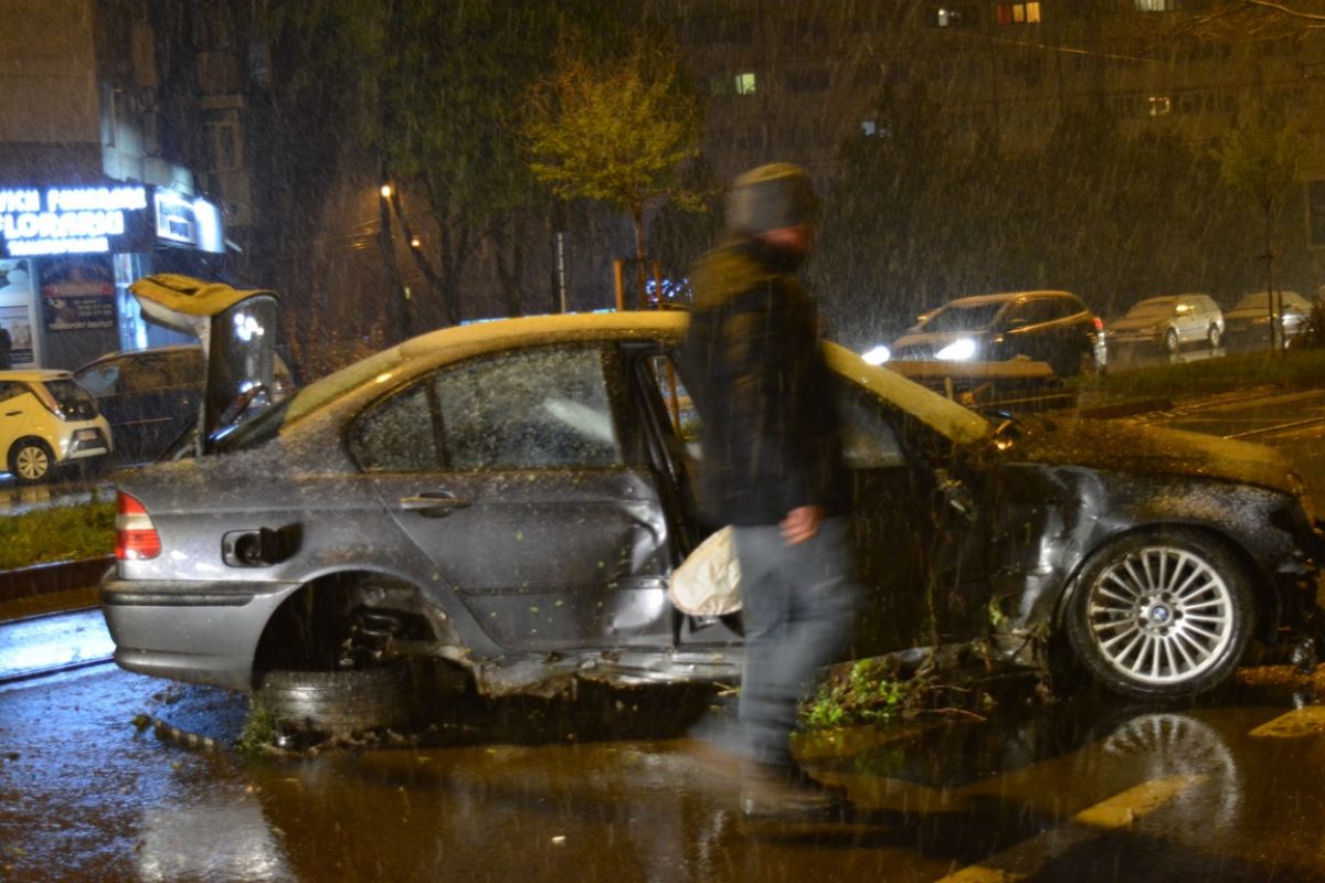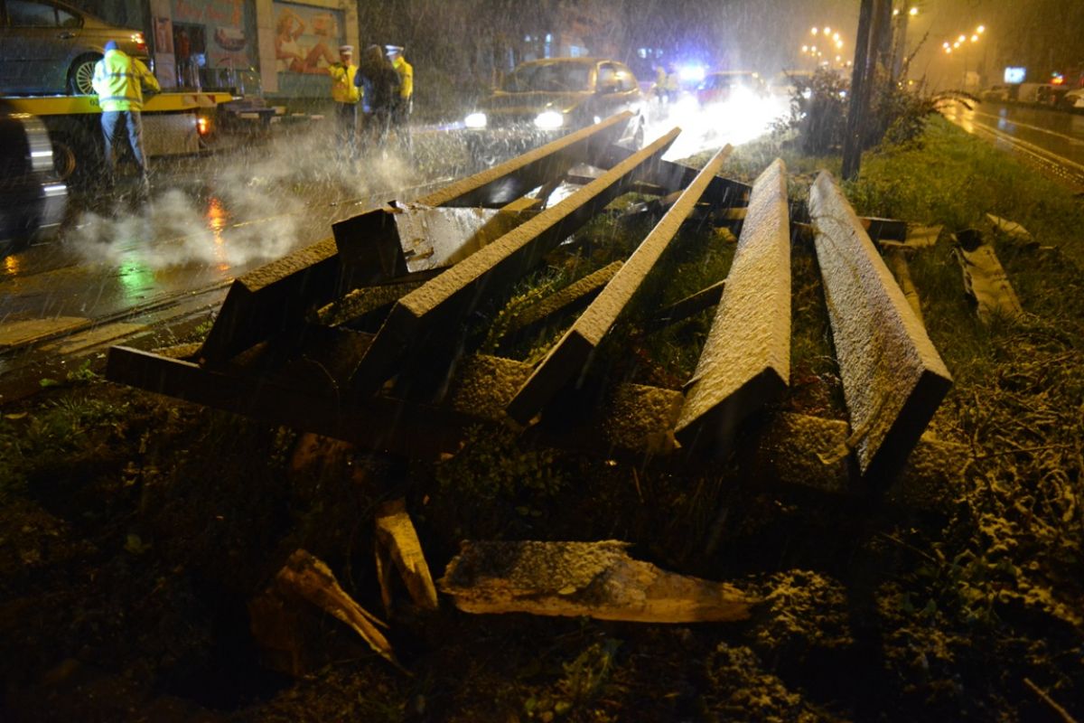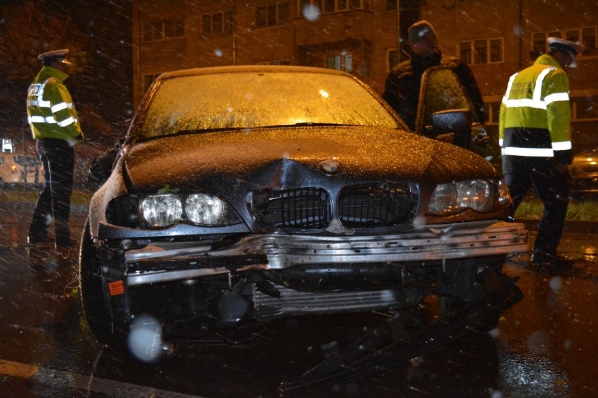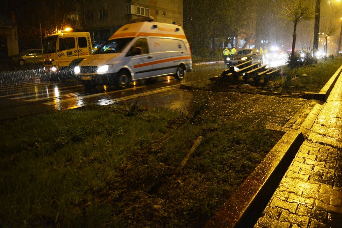 În apropierea Anca Farm conducătorul auto a pierdut controlul BMW-ului, a intrat pe scuar, a rupt o pergolă din lemn, a culcat două indicatoare, după care s-a întors cu bordul spre stadion.