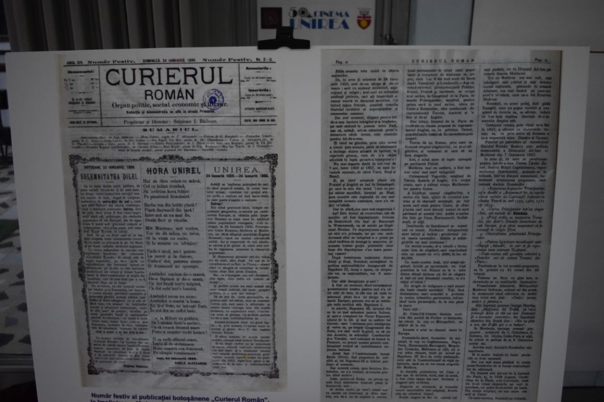 În holul cinematografului au fost expuse fotografii cu domnitorul Alexandru Ioan Cuza şi mai multe personalităţi istorice, precum şi pasaje din cotidienele acelor vremuri, care anunţau Mica Unire.