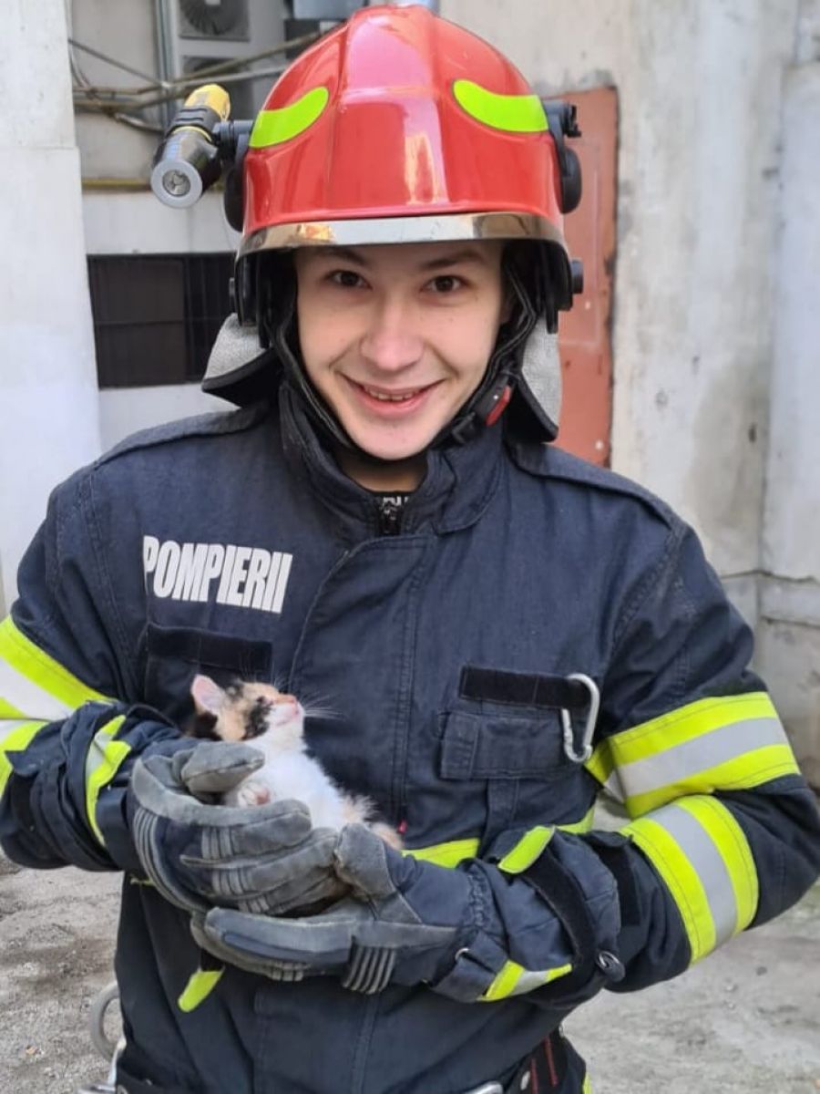 În timp ce se plimba pe acoperișul unui bloc din municipiul Botoșani, un pui de pisică a ajuns într-un burlan de scurgere a apei pluviale și a căzut în gol până la nivelul primului etaj.