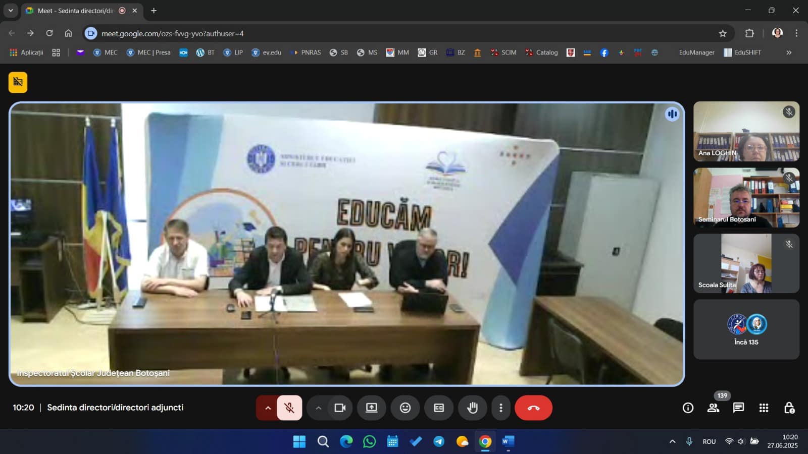 Vineri, 27 iunie 2025, conducerea Inspectoratului Școlar Județean (IȘJ) a organizat o întâlnire online, cu directorii unităților de învățământ preuniversitar din județul Botoșani.