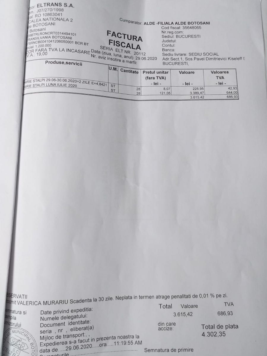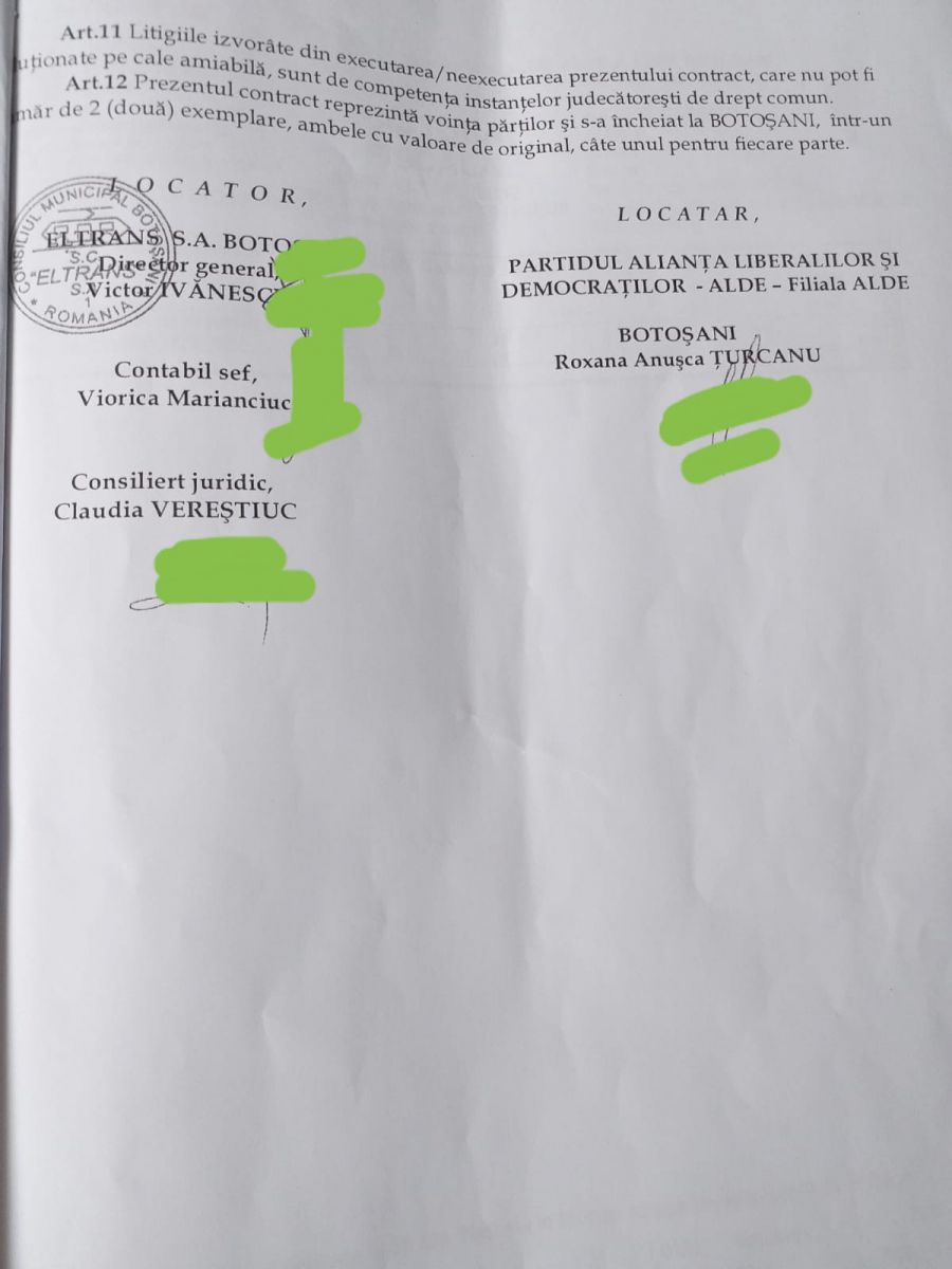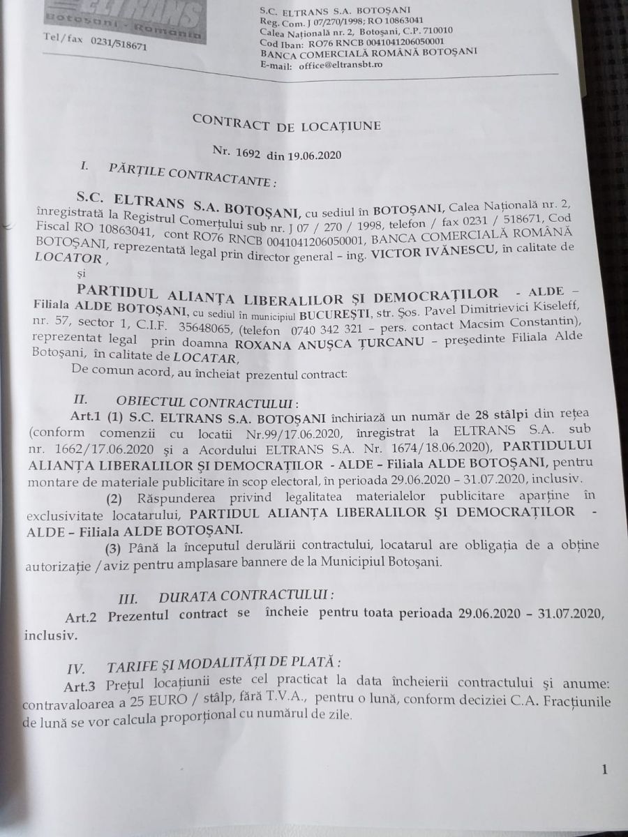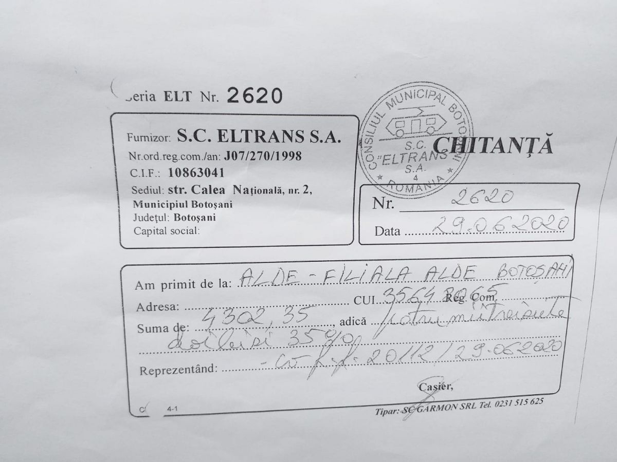 „Susținătorii USR Botoșani încep sa atace fără motiv și sa minta lumea cum ca as fi instalat bannere ILEGAL. Mă văd în postura de a răspunde acestui... om și să le demonstrez cetățenilor că nu sunt genul de persoană care sa acționeze ilegal. Vă atașez contractul cu Eltrans, factura și chitanța cu plata efectuata pentru bannere”,