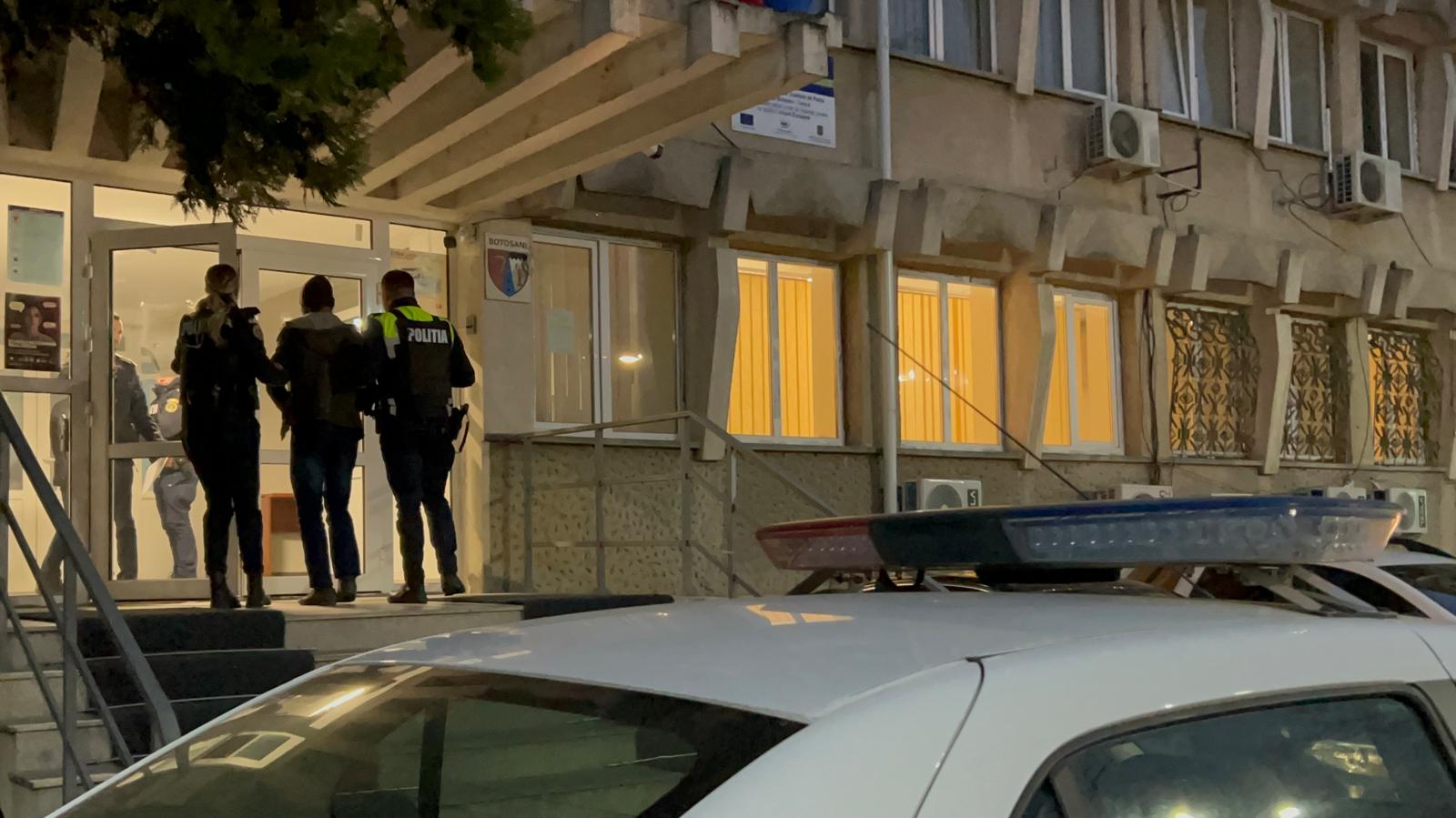 Doi botoșăneni aduși în cătușe la sediul Poliției după ce și-au bătut prietenul în casă – VIDEO