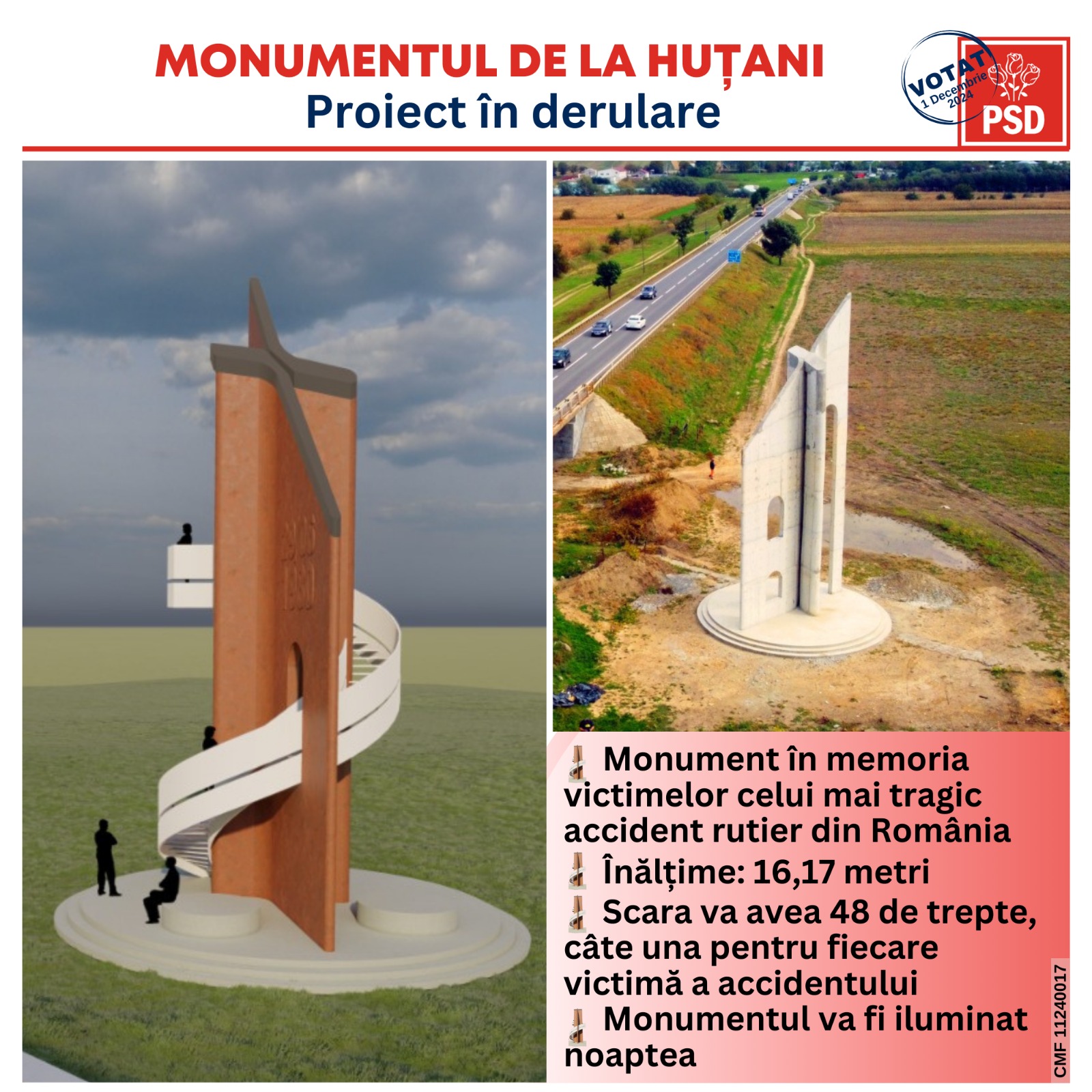 • Construirea Monumentului de la Huțani în memoria victimelor celui mai tragic accident rutier din istoria României.