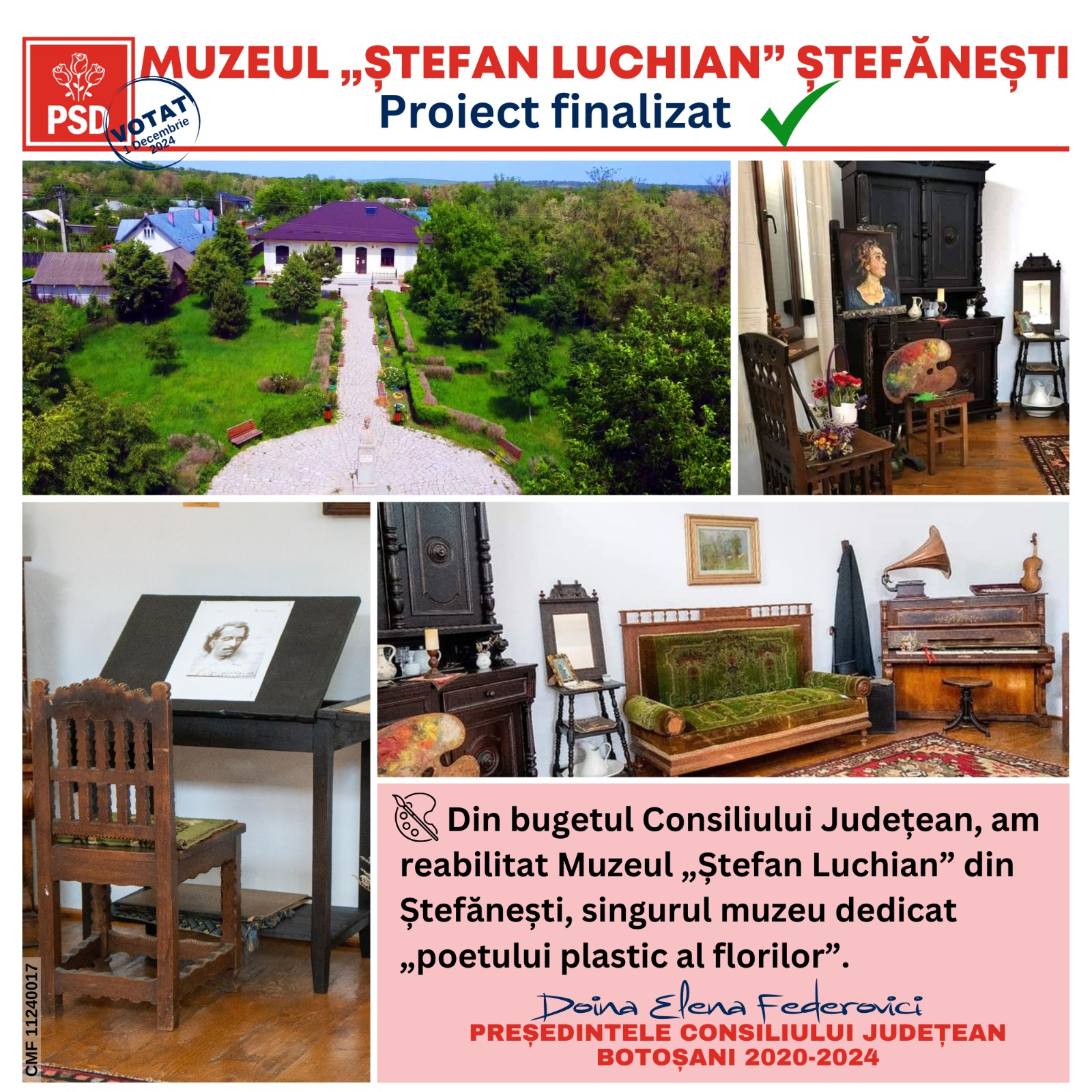 • Modernizarea și redeschiderea Muzeului „Ștefan Luchian” Ștefănești – singurul muzeu dedicat „poetului plastic al florilor”;