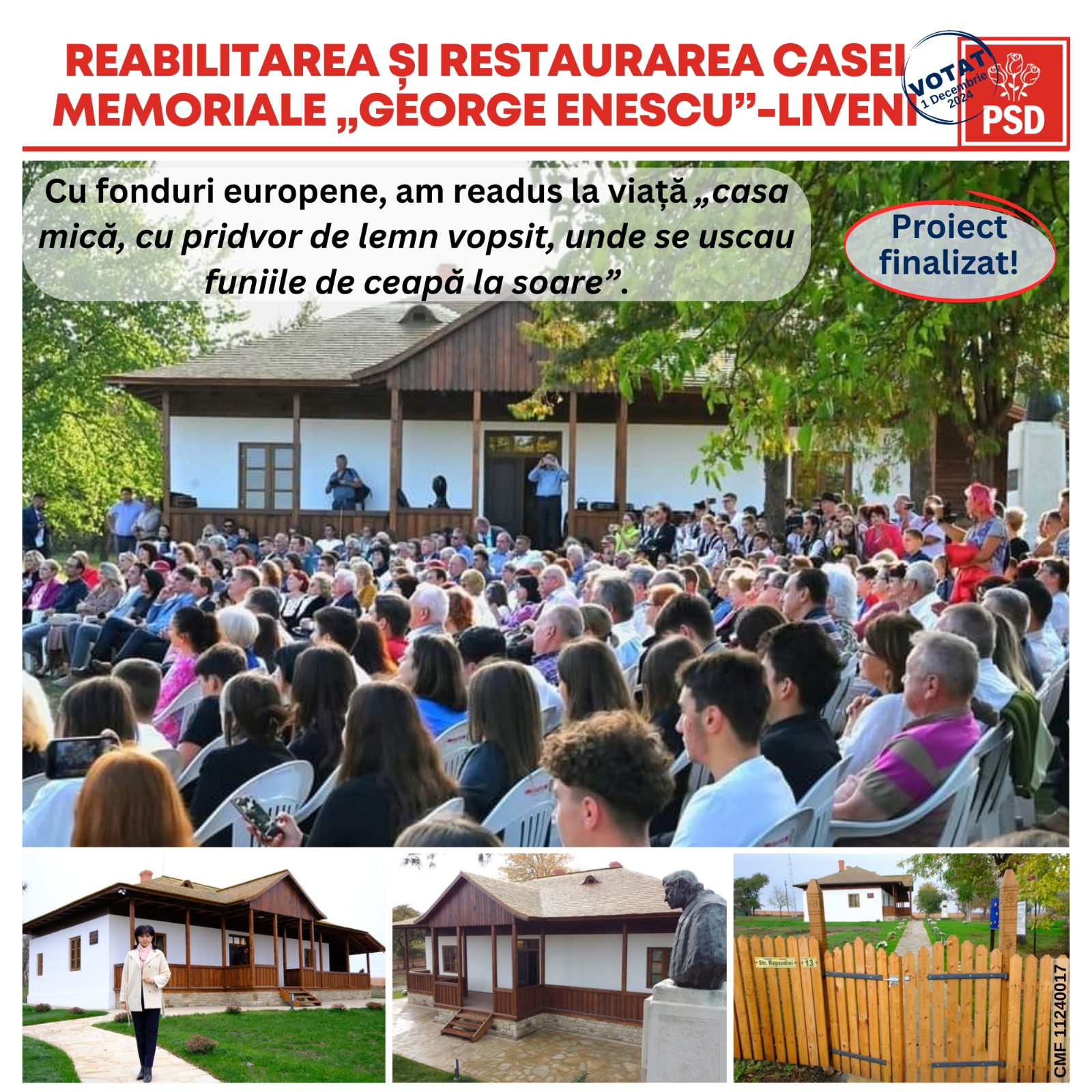 • Reabilitarea și restaurarea Casei Memoriale „George Enescu” de la Liveni;