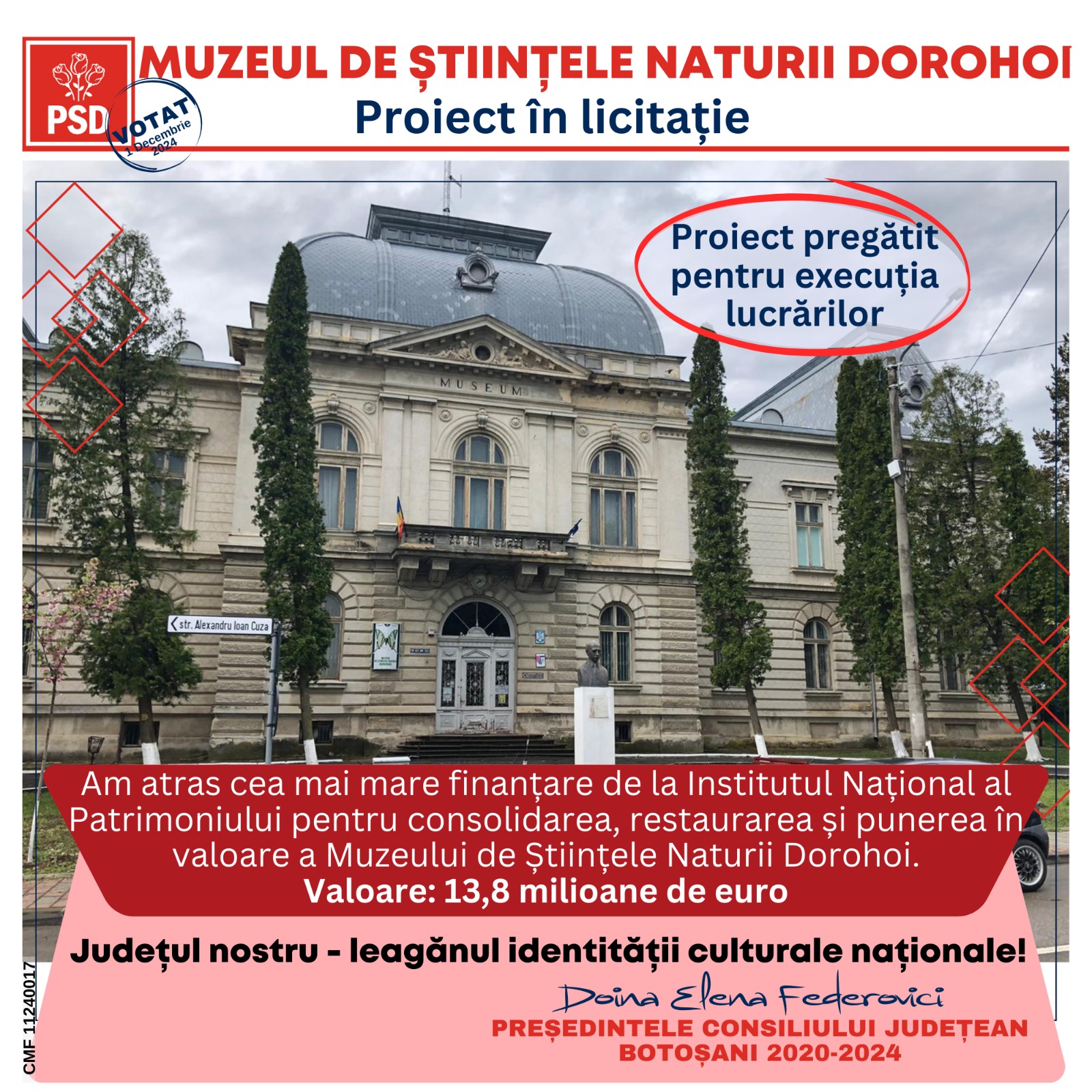 • Reabilitarea Muzeului de Științele Naturii Dorohoi – cel mai mare proiect derulat de Institutul Național al Patrimoniului;