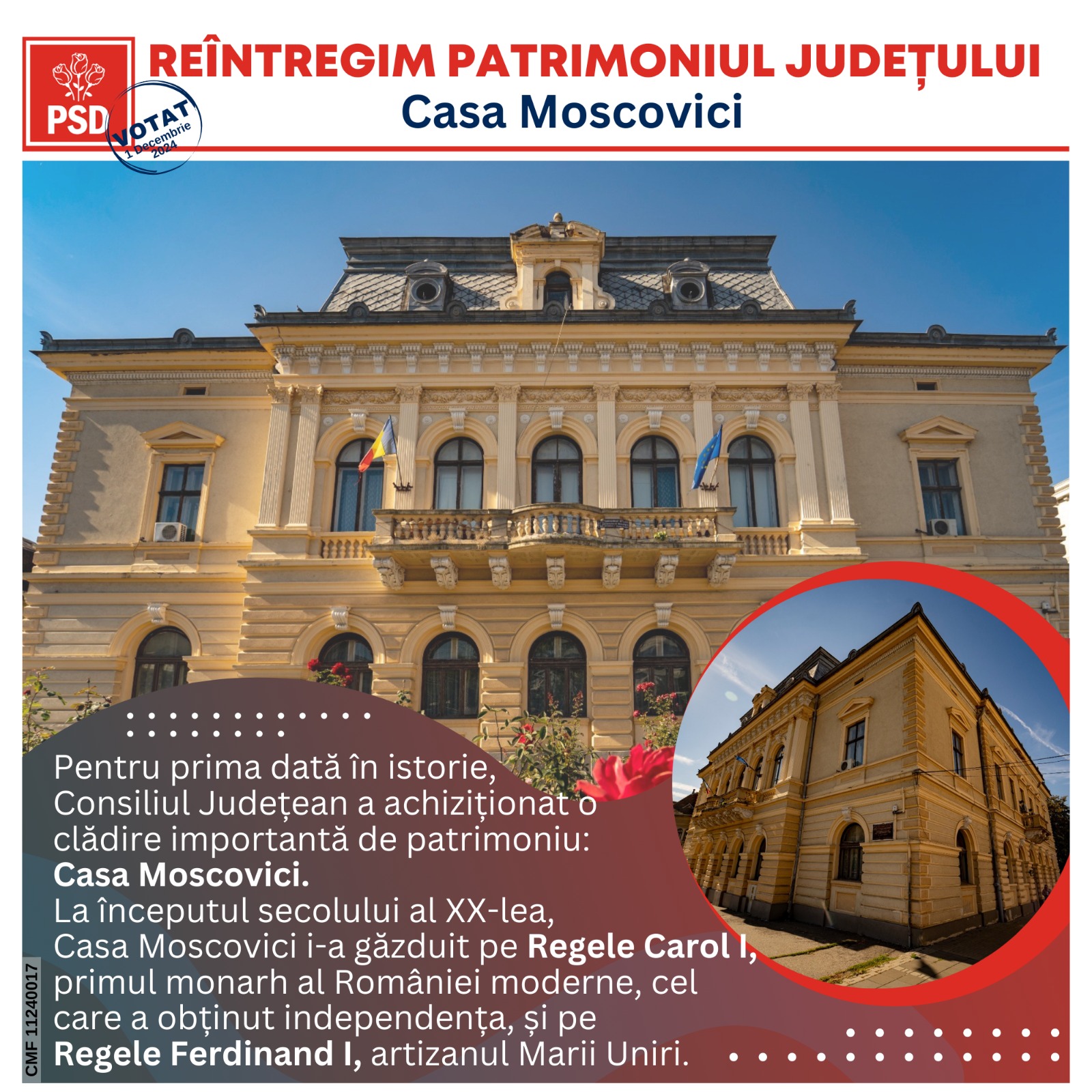 „Pentru prima dată în istorie, autoritatea județeană a achiziționat o clădire importantă de patrimoniu, Casa Moscovici, cu intenția de a o restaura și muta aici sediul Consiliului Județean Botoșani. Documentația este pregătită pentru a fi depusă la finanțare pe Programul Regional, când se vor deschide axele de guvernare”, a mai spus Doina Federovici