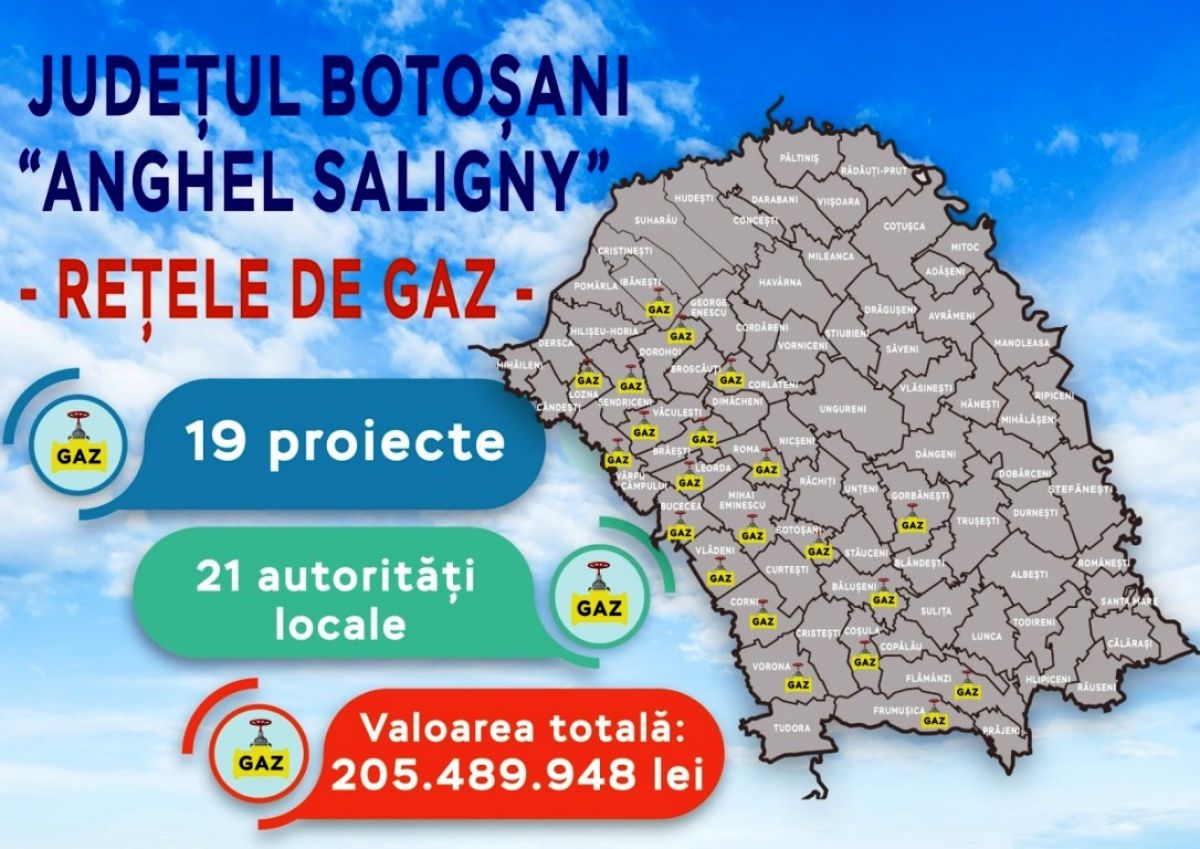 19 proiecte de investiții în rețele și sisteme de distribuție gaze naturale depuse de autoritățile locale și asociațiile de dezvoltare intercomunitară vor primi finanțare prin intermediul Programului Național de Investiții „Anghel Saligny”. Valoarea totală a acestor proiecte se ridică la 205,5 milioane lei, adică peste 41,5 milioane de euro.