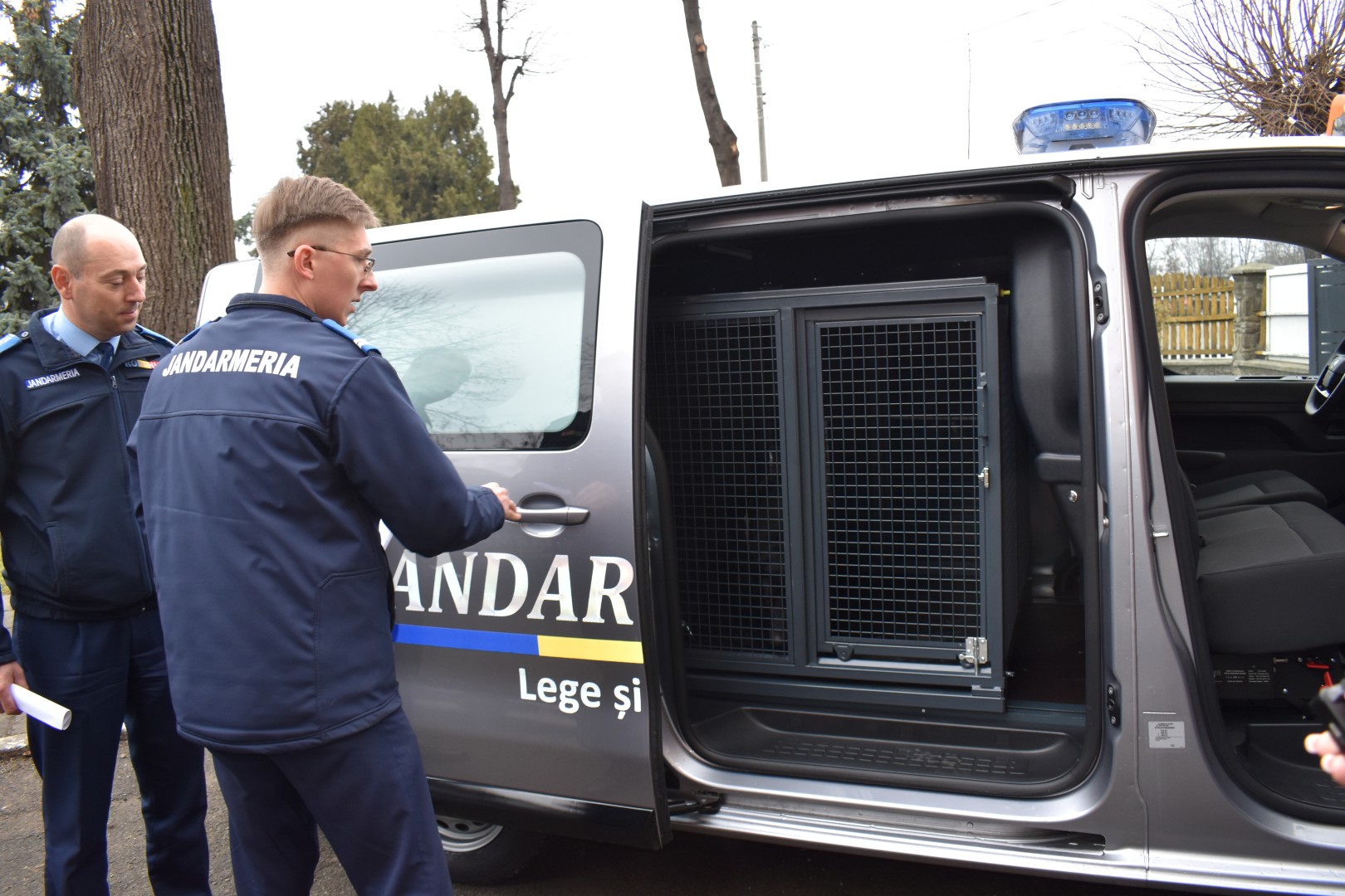 Jandarmeria Botoșani a primit o autoutilitară cu dotări speciale (transport câini) inscripționată și un autovehicul cu tracțiune integrală, Pick - Up cu cabină dublă.