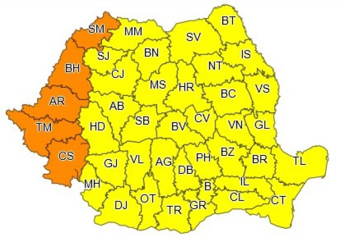 Administrația Națională de Meteorologie a emis astăzi noi avertizări cu privire la evoluția vremii în următoarele zile.