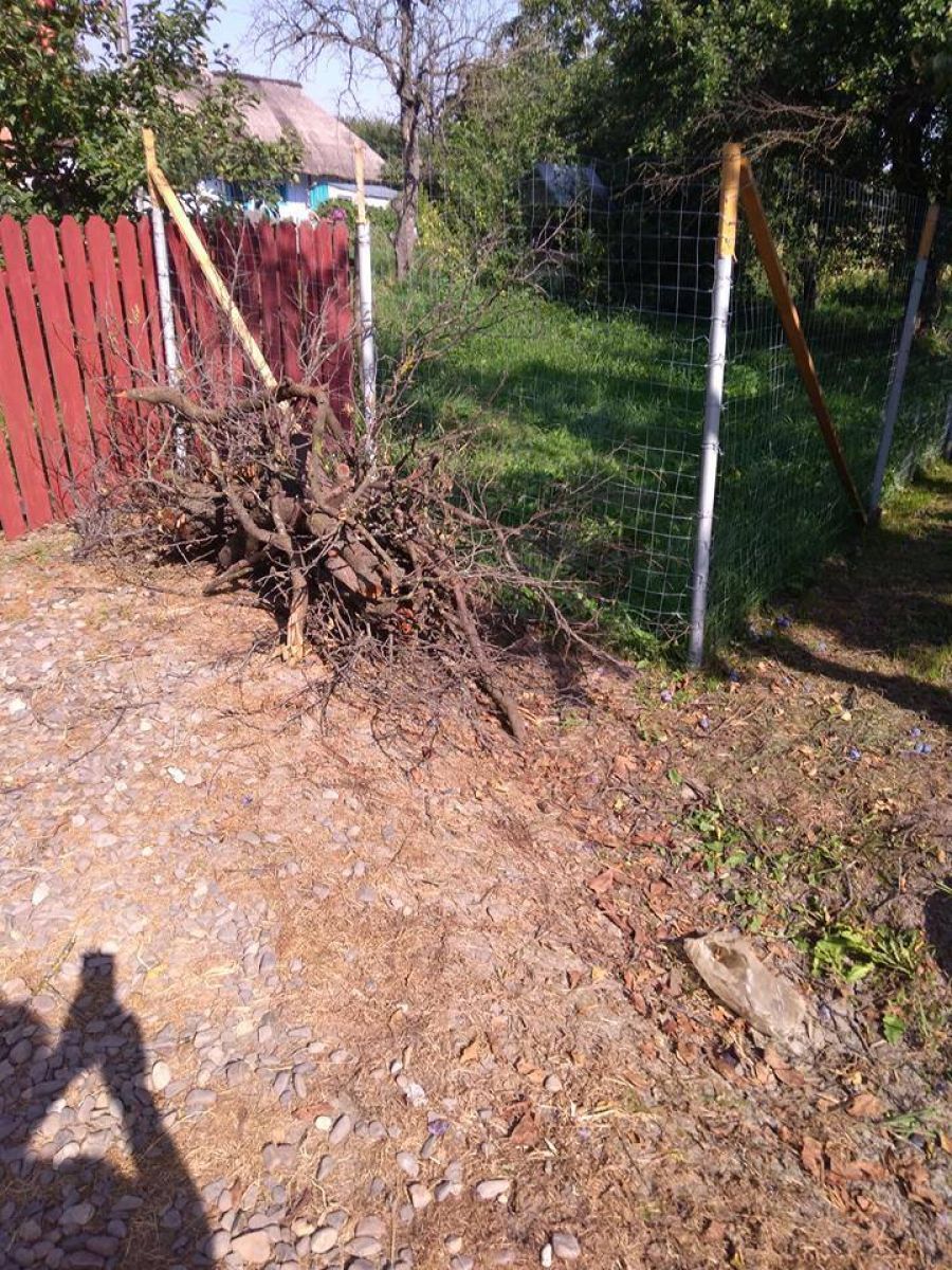 Femeia de 80 de ani plânge și spune că mai nou pe locul pe unde avea ieșirea din curte, vecinul ei a pus și un braț de crengi.
