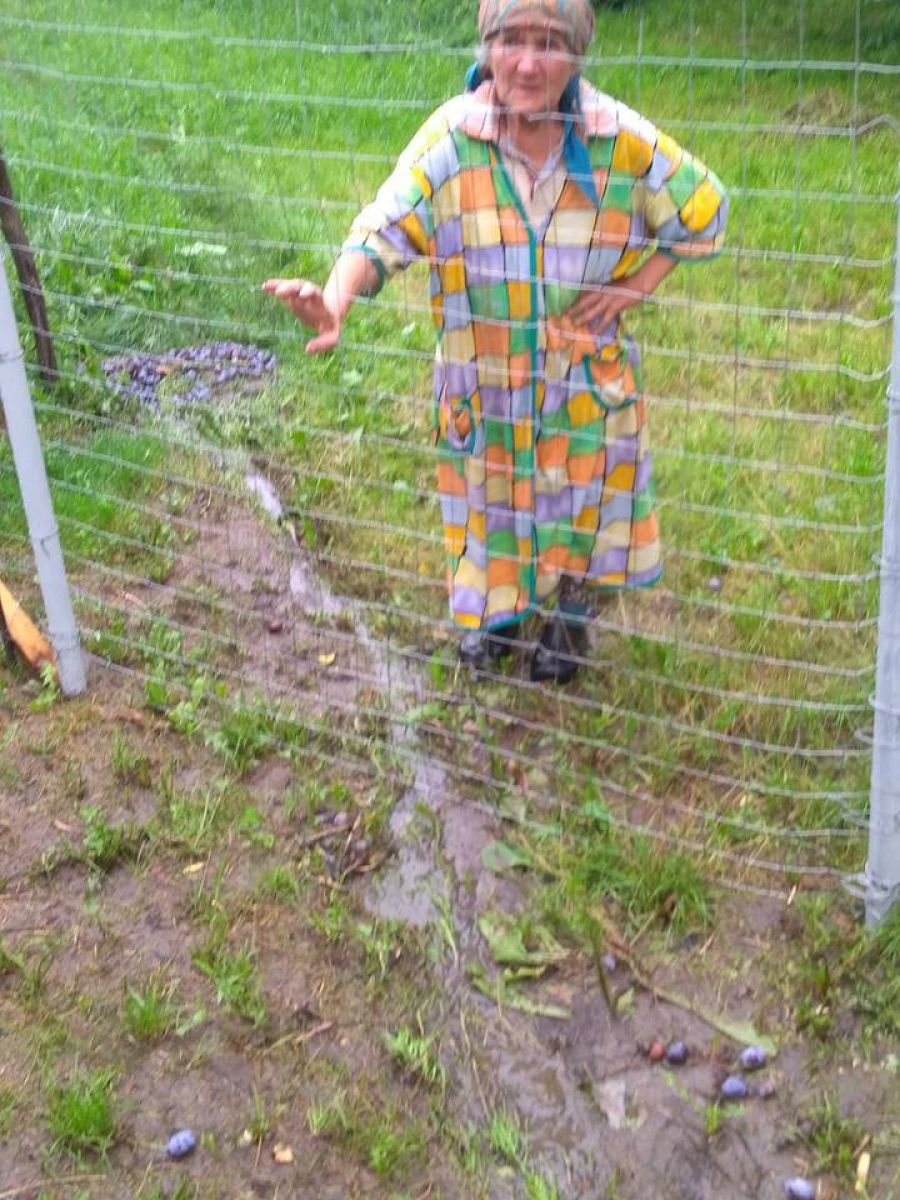 „Zice că i-am furat din perje (prune n.r.), a avut pere, cireși. A închis tot, dar de ce nu a închis bucata lui, de ce m-a închis pe mine, că nu pot ieși? S-au rupt crengile de greutatea prunilor și le-a pus pe toate la mine în poartă. Eu sunt femeie bătrână și bolnavă, am un băiat care mi-a murit, am o fată la Brașov… nu mai știu ce să fac”,