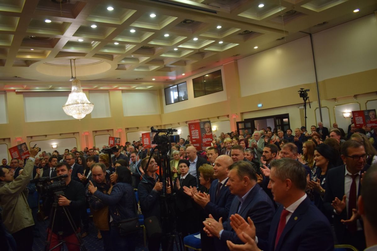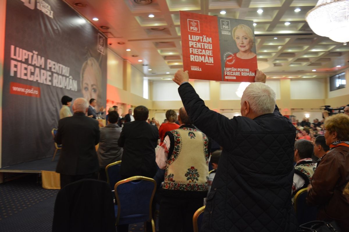 Prim-ministrul încă în funcție a fost așteptată de circa 500 de oameni în sala Eminescu a Hotelului Rapsodia.