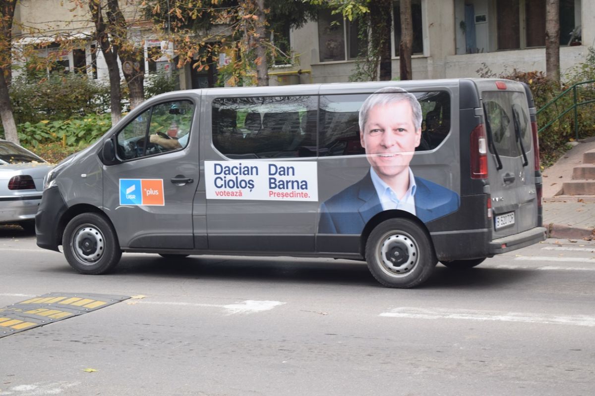 În tot acest timp pe strada Marchian făcea ture o furgonetă ce avea lipit un afiș uriaș cu Dan Barna președinte.
