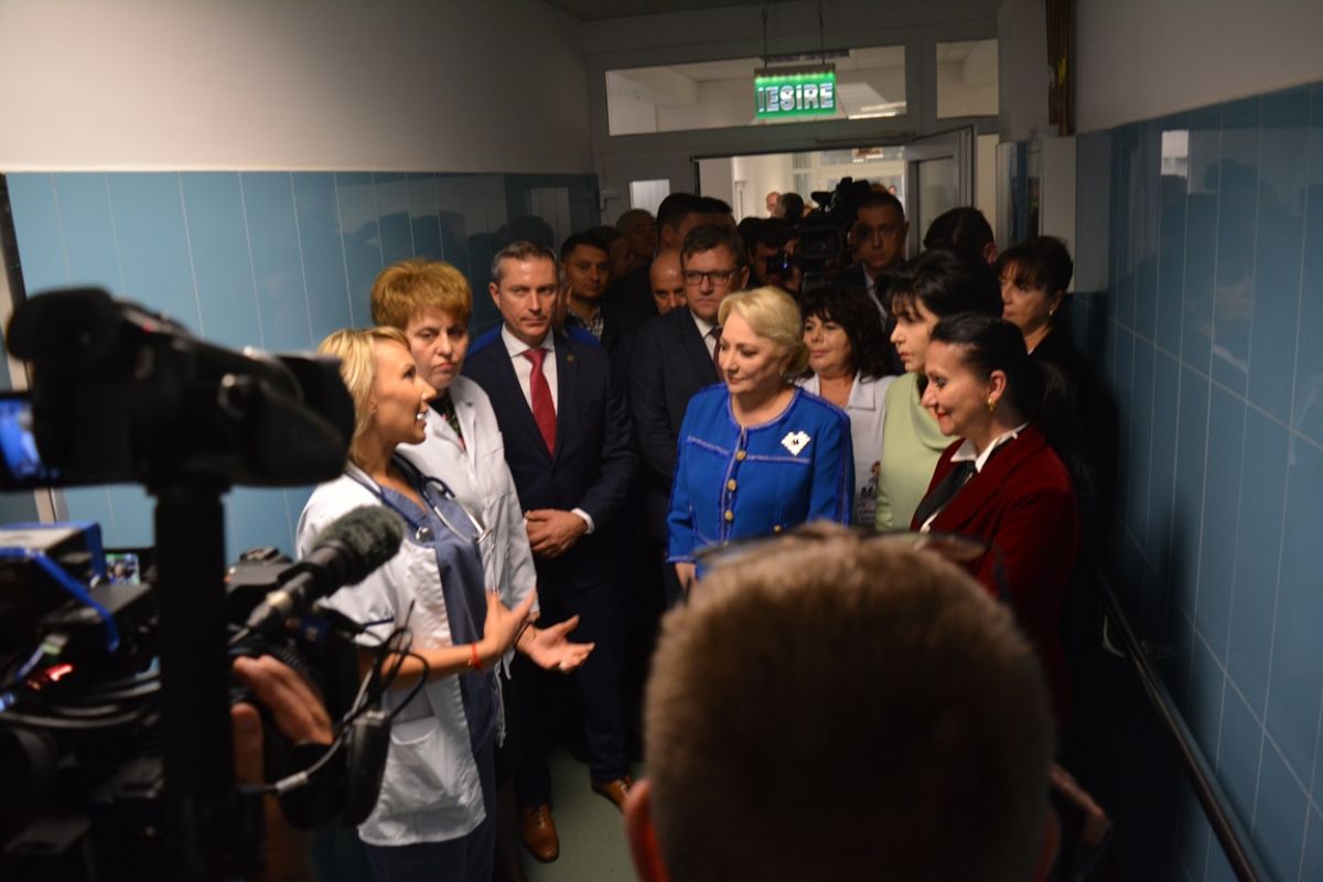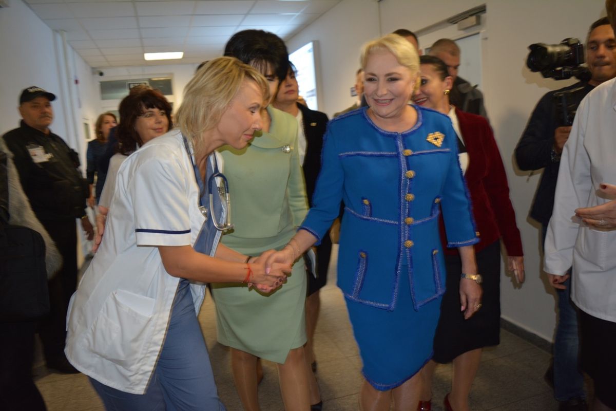 Sute de cadre medicale și pacienți au așteptat-o în curte, iar în spital managerul Livia Mihalache și șefa Unității de Primiri Urgențe, Ramona Guraliuc, au ținut să mulțumească parlamentarilor PSD și Guvernului PSD pentru cât l-au ajutat pe ”Mavromati”. În timp, ce șefele nu mai pridideau cu mulțumirile, zeci de personae erau blocate la intrarea în spital, o femeie agent cerându-le să mai aștepte până ce oficialitățile părăsesc unitatea.