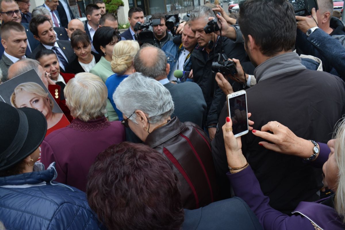 Viorica Dăncilă a ieșit apoi din hotel chiar când prin zonă trecea o înmormântare, după care a luat-o la pas pe strada Cuza Vodă. La câțiva zeci de metri a tot fost oprită de pensionari, inclusiv o vârstnică ce i-a cerut în lacrimi: ”am plans și plâng tot timpul. Să nu ne lăsați… Să nu ne lăsați! Vă rugăm din suflet pe toți PSD-iștii, vă iubesc, v-am iubit, vă iubesc de când sunt eu, de când e democrația”.