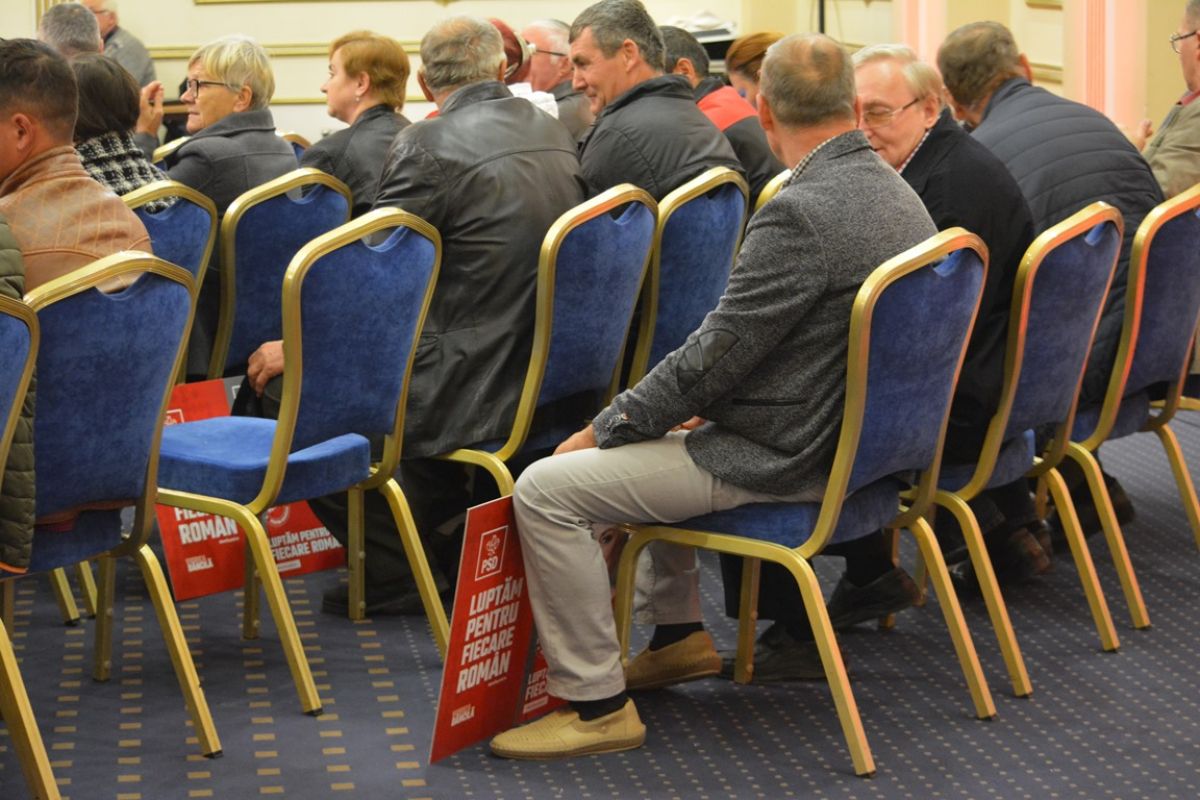Primele două rânduri de scaune au fost rezervate conducătorilor PSD Botoșani, plebea partidului fiind trimisă mai în spate.