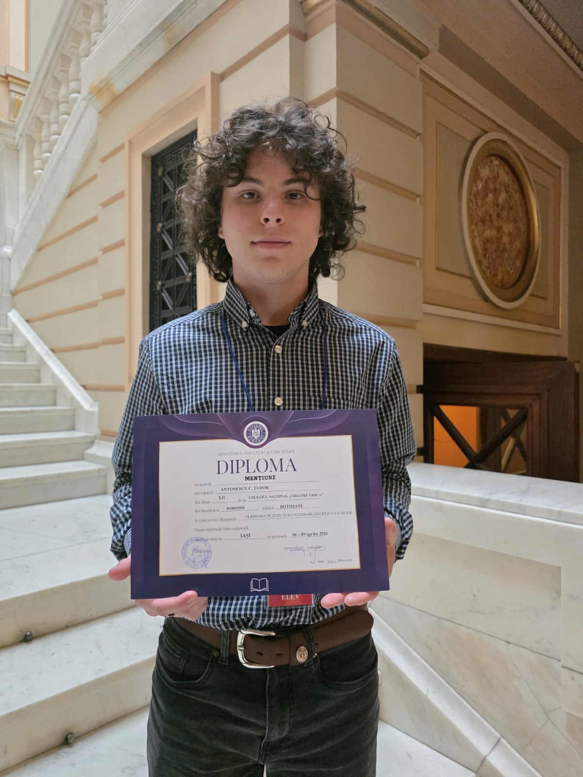 Eleva Gavril Ștefania, de la Colegiul Național „Mihai Eminescu” Botoșani și elevul Antonescu Tudor de la Colegiul Național „Grigore Ghica” Dorohoi s-au întors cu mențiuni.