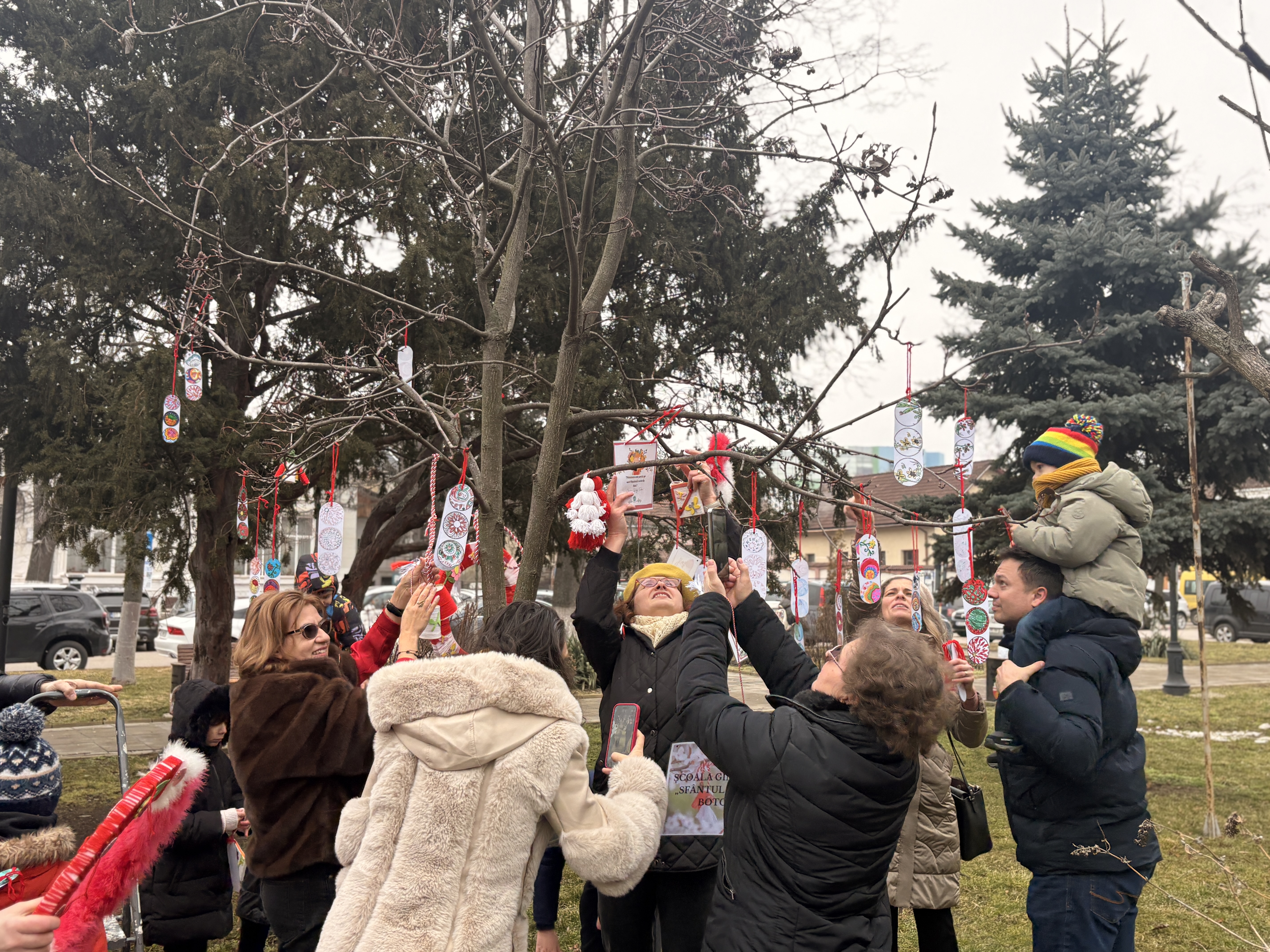 Copiii, îndrumați de cadrele didactice, au împodobit copacii cu mărțișoare realizate manual, fiecare unitate de învățământ aducând un plus de originalitate prin creații atent lucrate. Chiar dacă temperaturile au fost scăzute, entuziasmul participanților a compensat frigul de afară, iar atmosfera a fost una caldă și plină de energie.