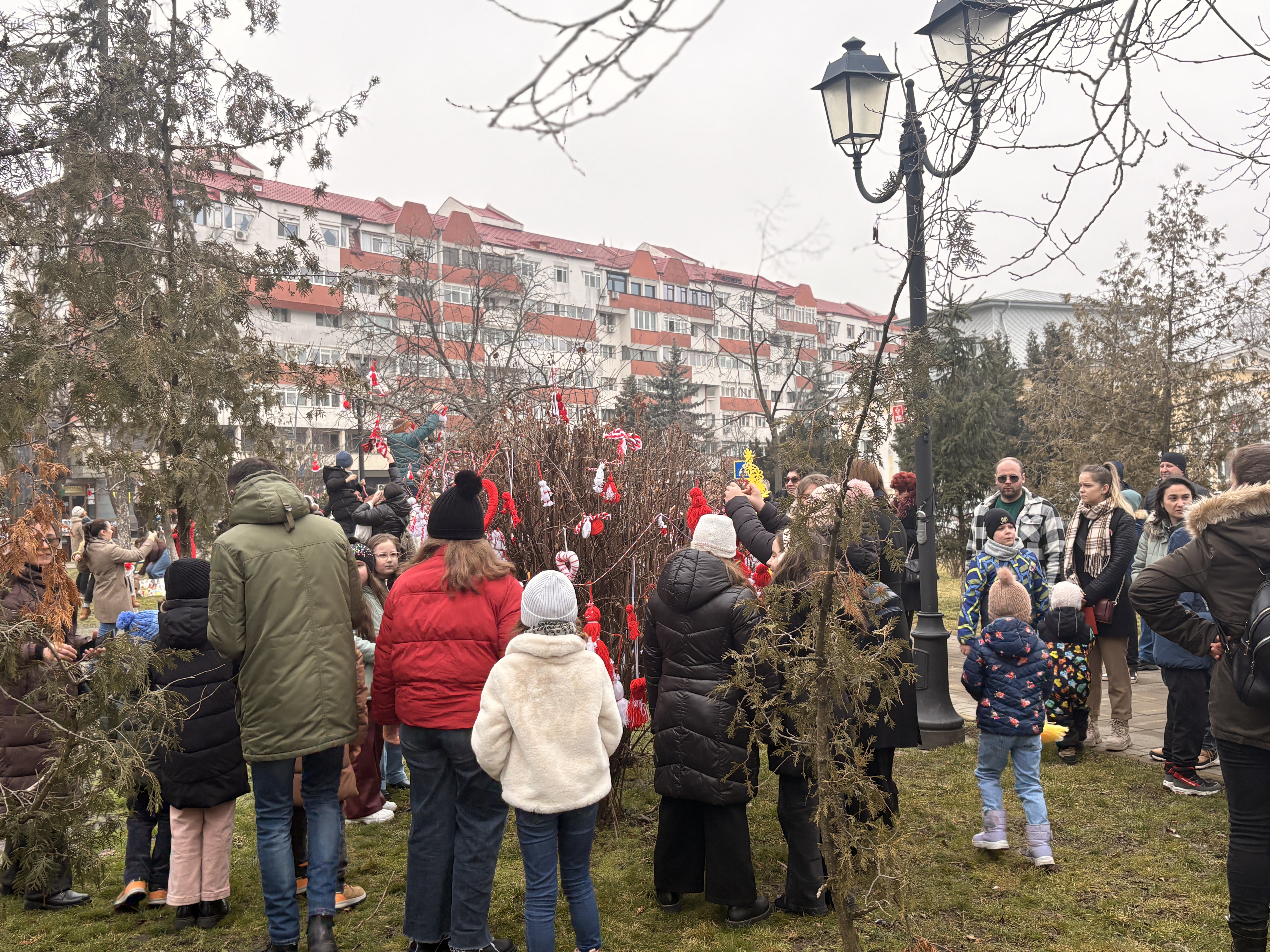 În ciuda vremii reci, elevii și preșcolarii din 21 de școli, grădinițe și licee au participat la ediția din acest an a proiectului „Copacul meu gătit în straie de Mărțișor”, transformând Parcul Primăriei într-un colț plin de simboluri alb-roșii.