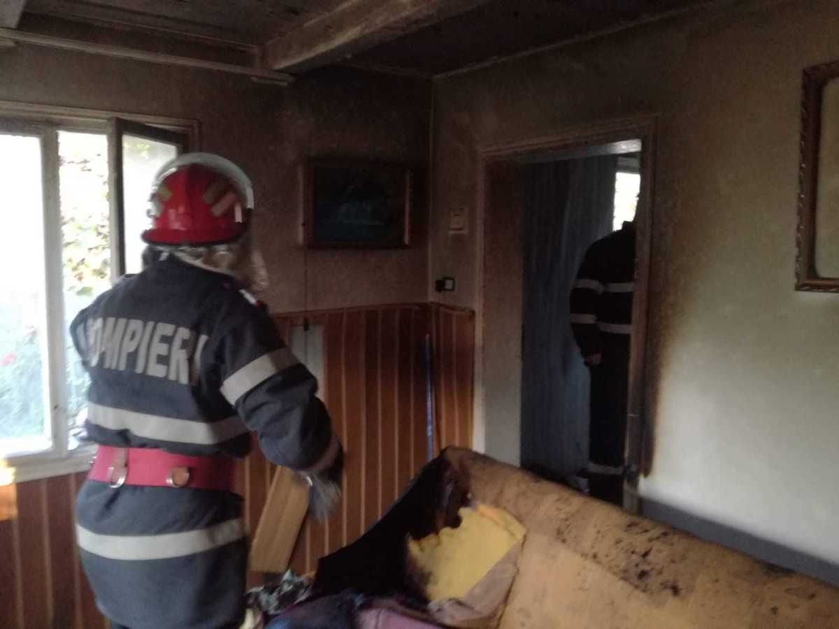 Proprietara, o femeie în vârstă de 82 de ani, a suferit arsuri la nivelul feței și mâinilor, fiind preluată de un echipaj SMURD.