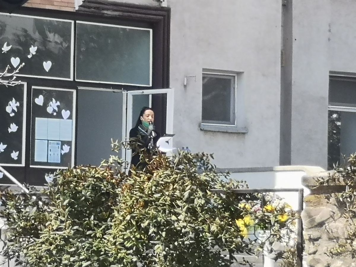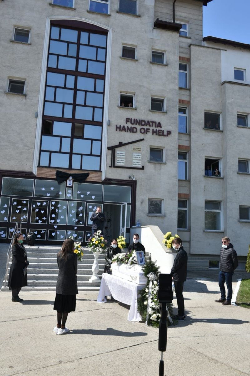 Ceremonia a fost una emoționantă. S-a respectat distanța impusă de ordonanțele militare. Copiii din centru, de la ferestre, au aruncat cu trandafiri albi, în semn de rămas bun.