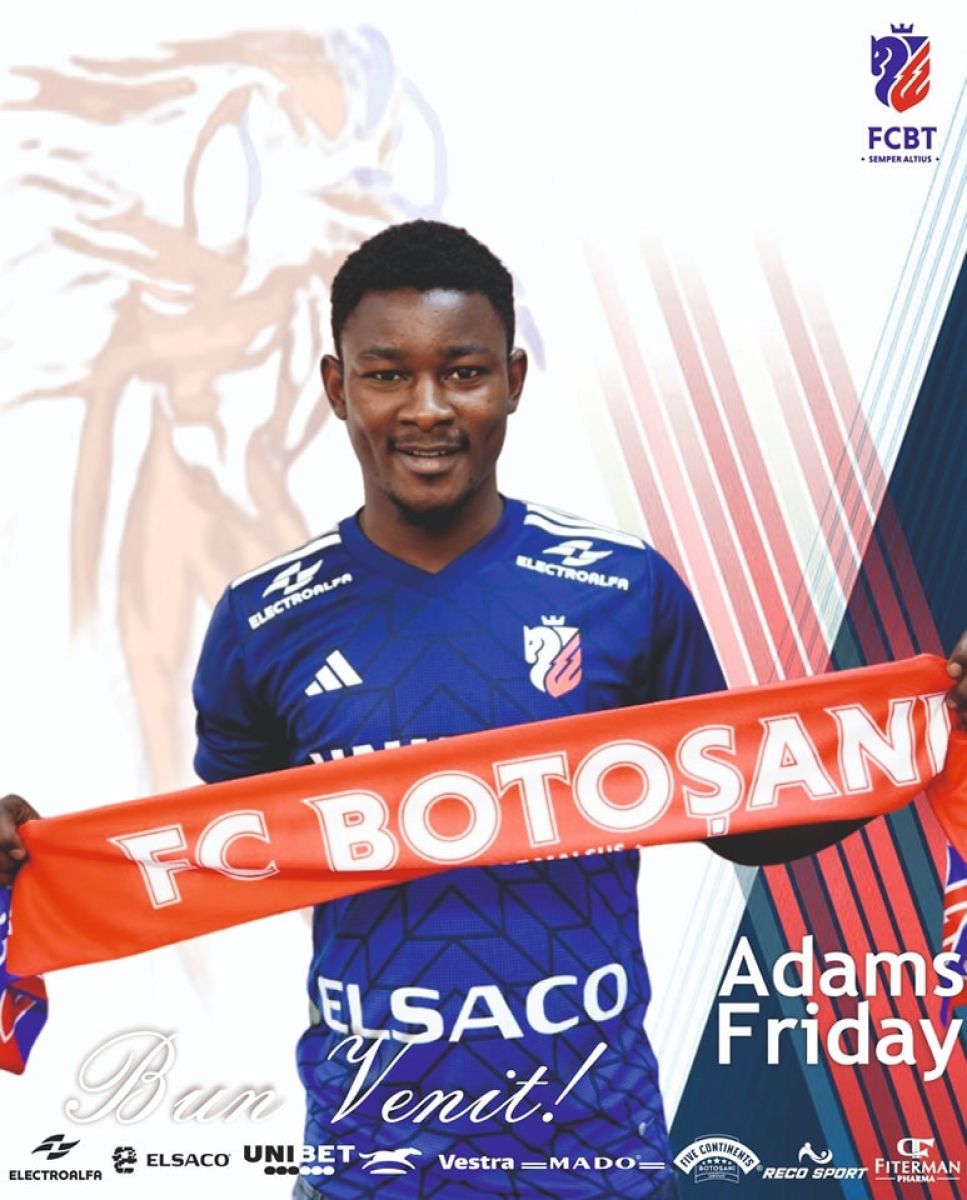 FC Botoșani anunță transferul unui mijlocaș dreapta, Adams Friday, din Nigeria. Născut în 2002, fotbalistul a mai evoluat la FDC Vista și FC Noah.