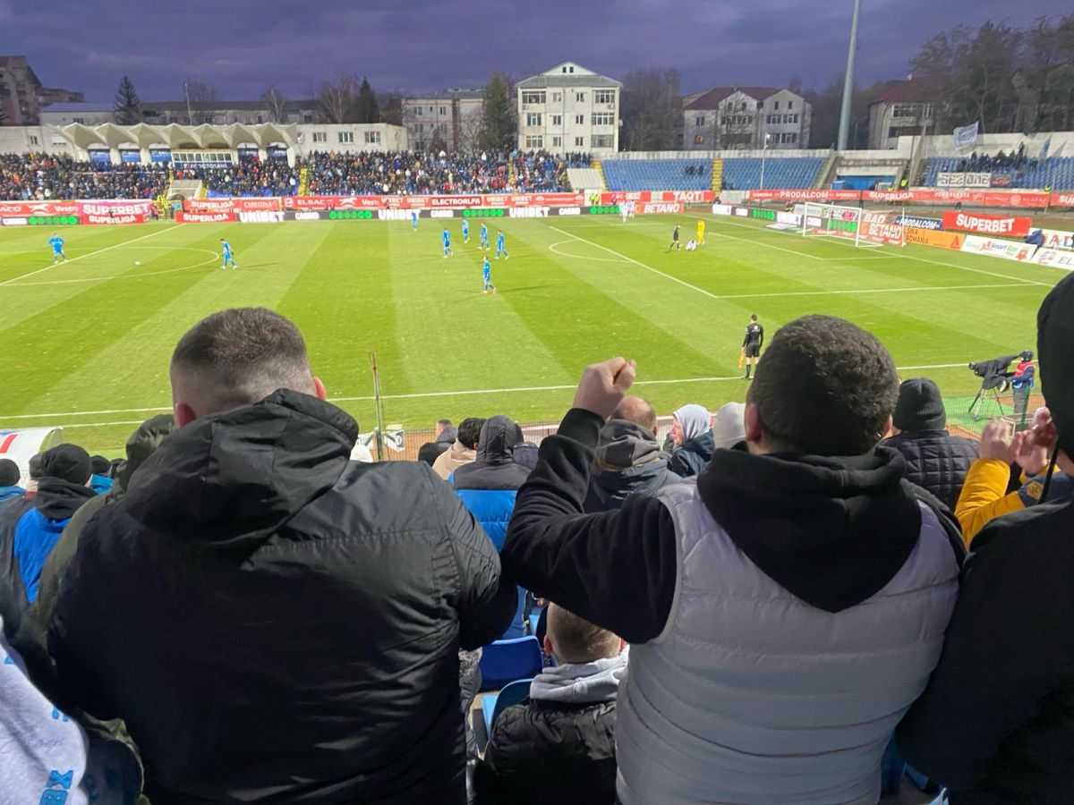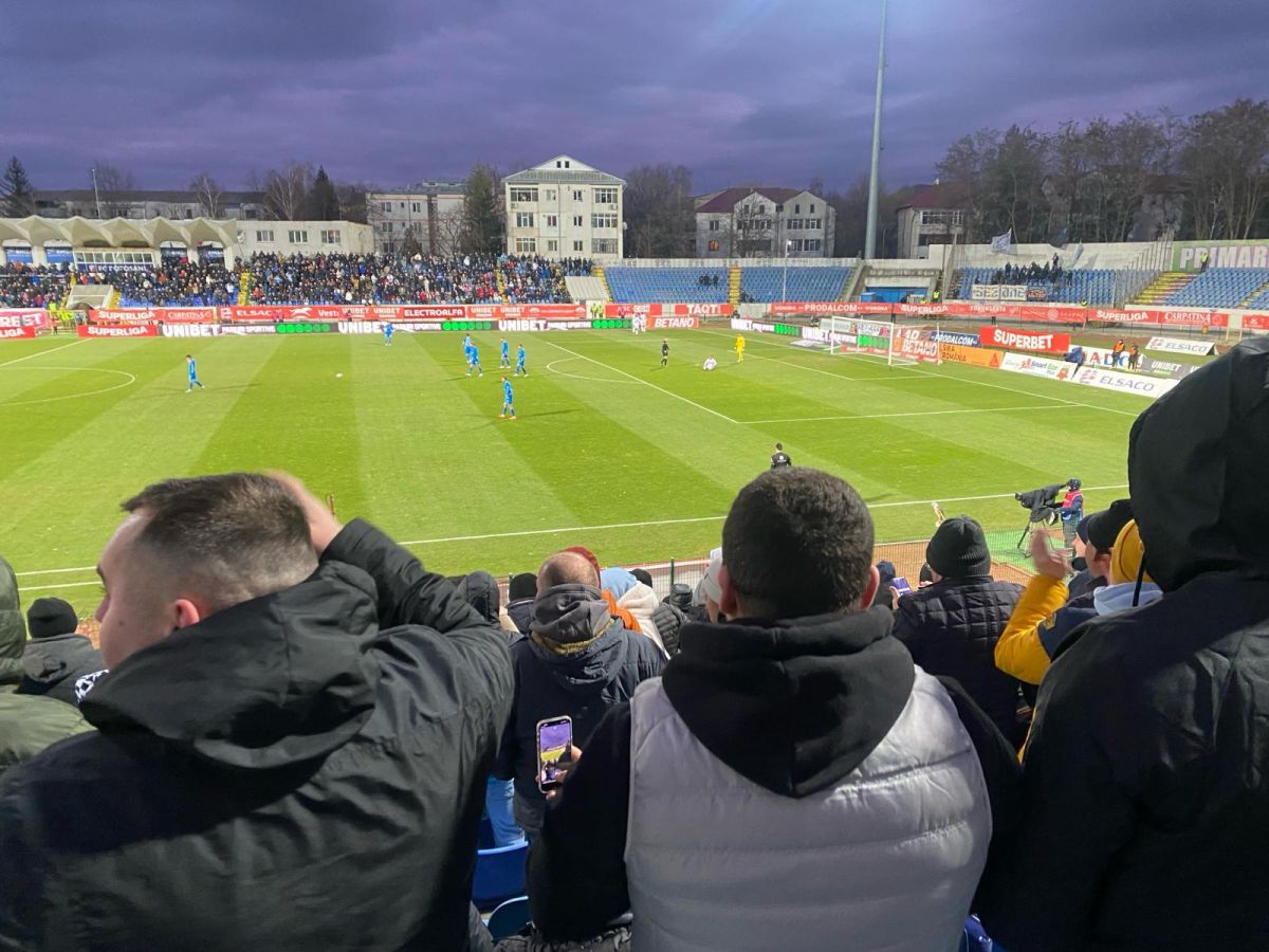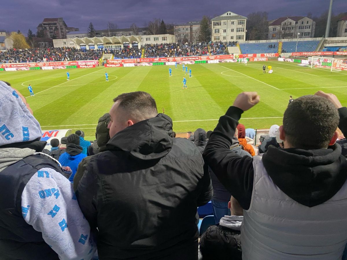 În minutul 17 stadionul a izbucnit. Un val de bucurie a străbătut suporterii la golul marcat de argentinianul Kaprof care a primit un balon înalt de la Benzar.