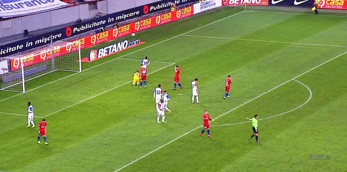 După 20 de minute căpitanul roș-albaștrilor, Florin Tănase, a marcat un gol fabulos din lovitură liberă, direct la vinclu.