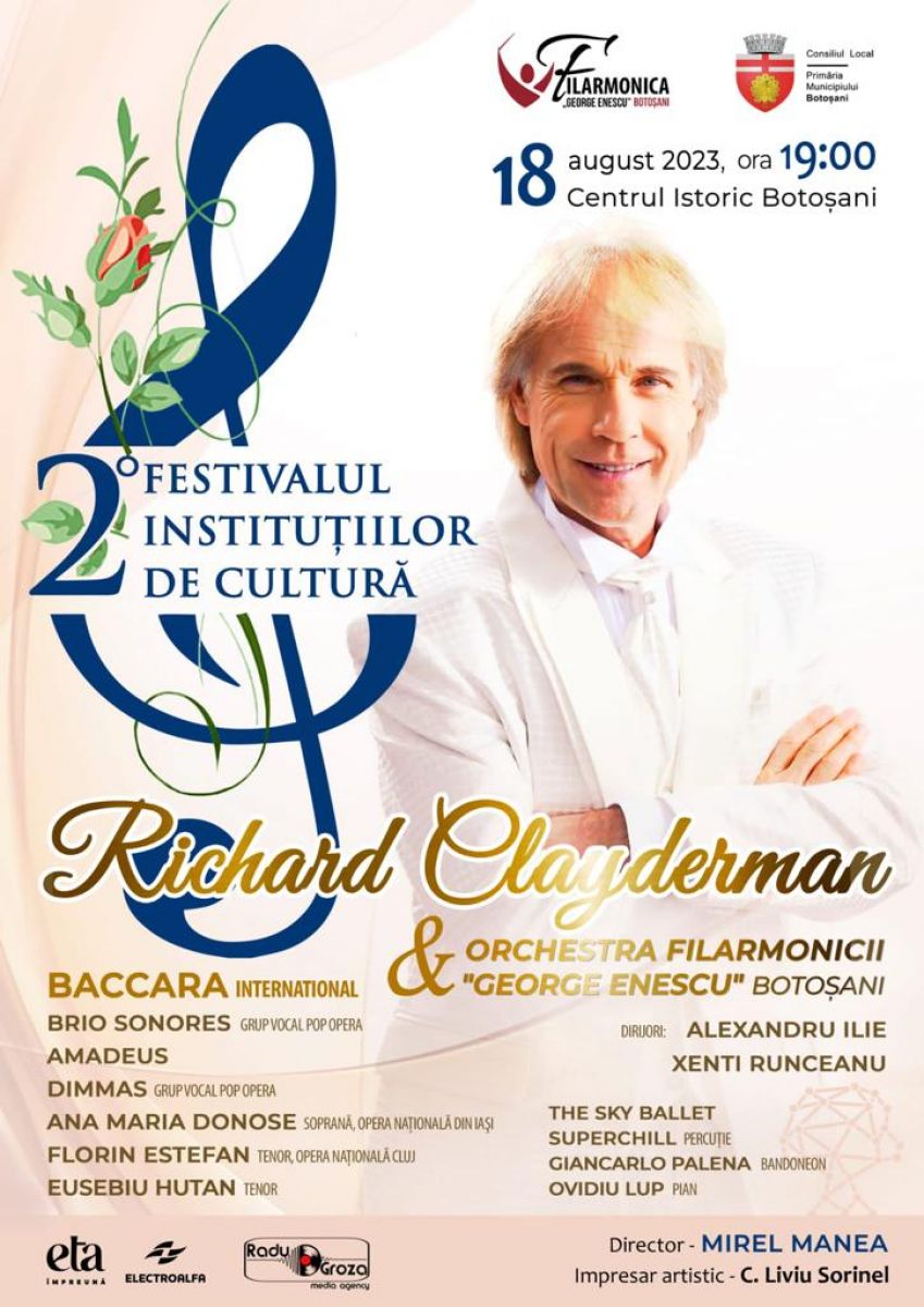 Evenimentul va aduce pe scenă acte culturale de calitate, din care cel mai așteptat moment va fi recitalul pianistului Richard Clayderman.
