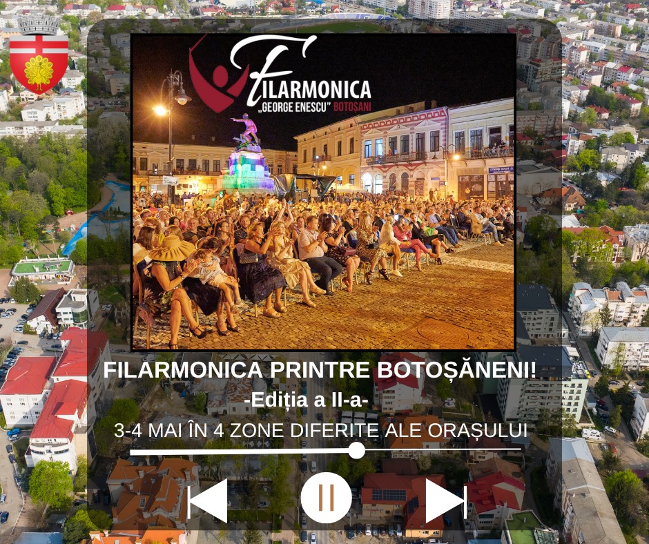 Primăria Municipiului Botoșani, în parteneriat cu Filarmonica „George Enescu” Botoșani, anunță desfășurarea celei de-a doua ediții a proiectului cultural „Turneu în cartierul tău”, în zilele de 3 și 4 mai 2025.