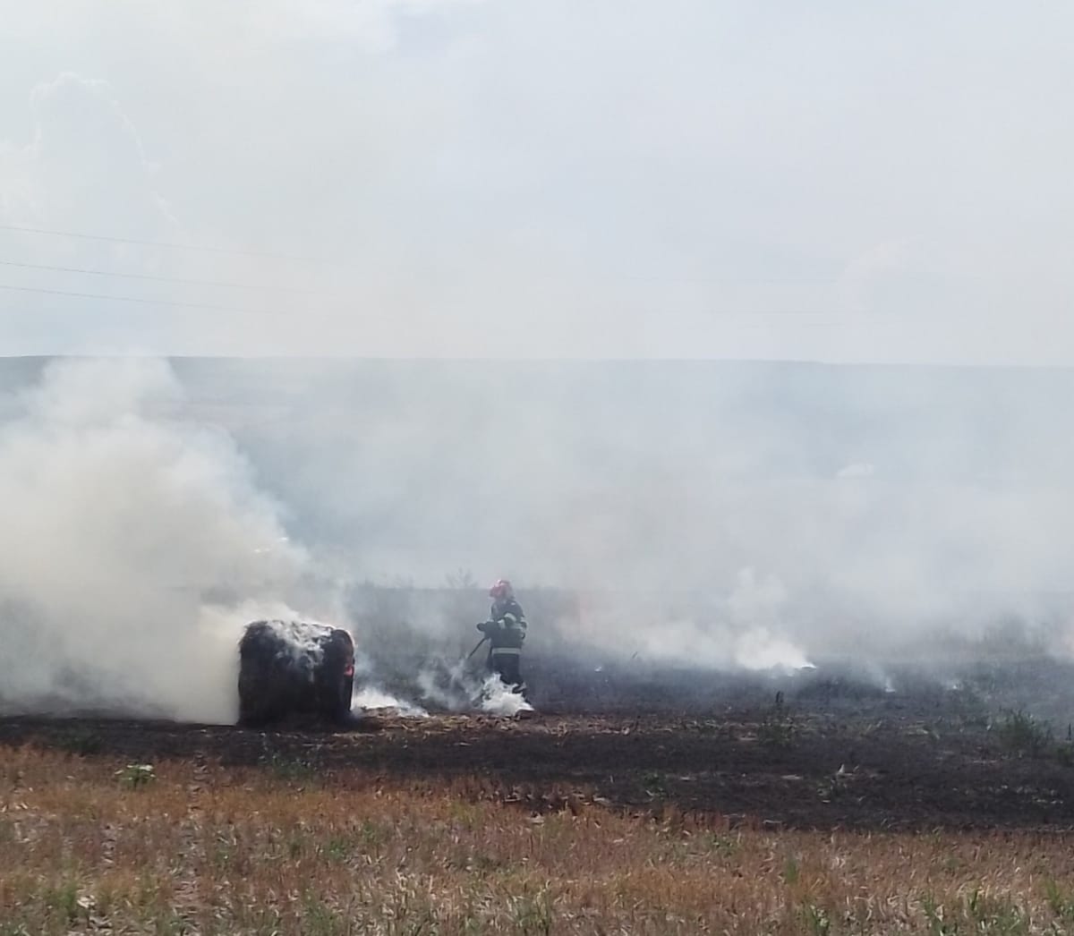 Aceștia acționat rapid astfel încât flăcările să nu cuprindă întregul depozit de furaje. Au ars vegetația uscată pe o suprafață de aproximativ 5.000 de metri pătrați și circa 500 kilograme de paie. Au fost protejați de foc peste 50 de baloți de paie.