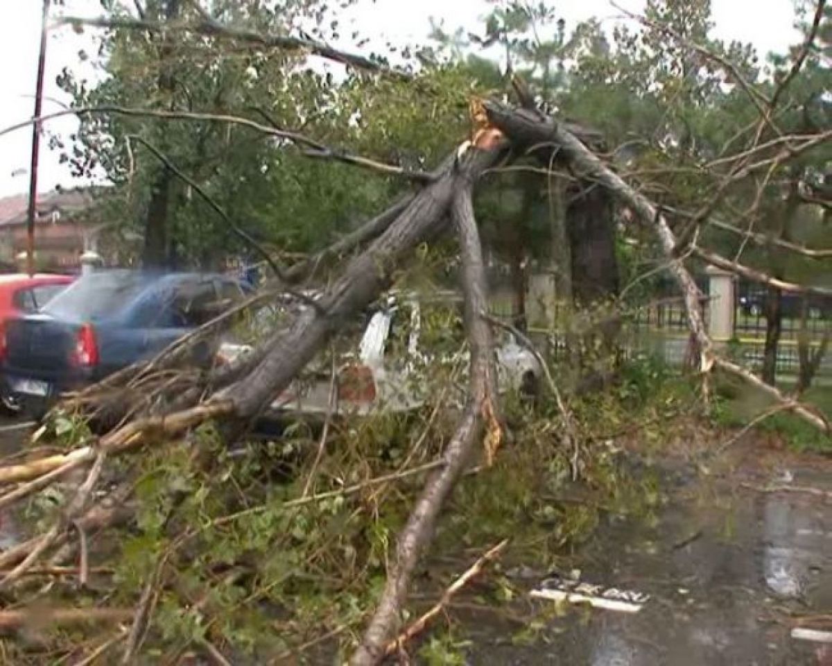 Furtuna a făcut PRĂPĂD și în municipiu: Un copac s-a prăbușit peste DOUĂ mașini