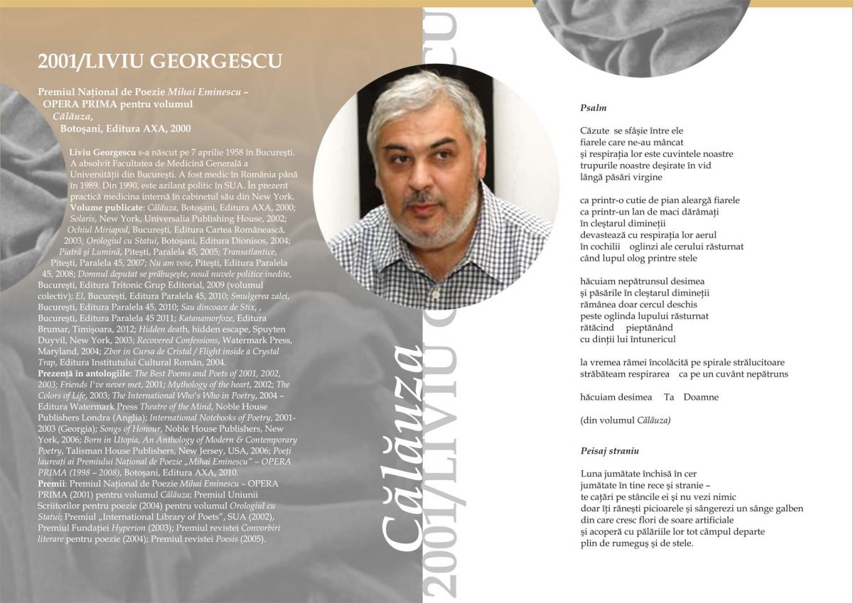 Memorialul Ipotești – Centrul Național de Studii Mihai Eminescu își propune, într-un parteneriat media cu ziarul Botoșăneanul, să prezinte, în ediția de duminică a rubricii GALERIA CU POEȚI, câte un laureat al Premiului Național de Poezie Mihai Eminescu – Opus Primum.