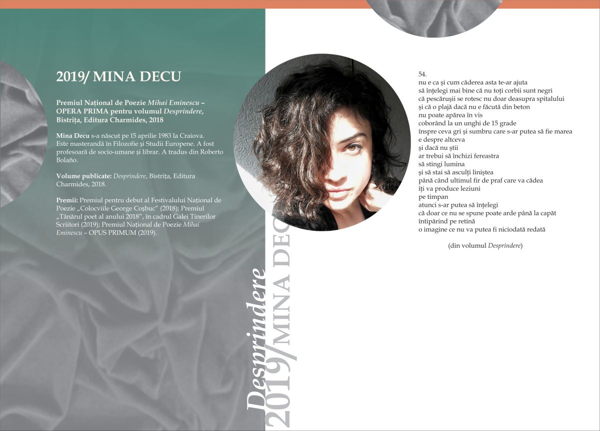 Printre debuturile în poezie a ultimilor ani, Desprindere de Mina Decu, pare să fie una dintre cărțile cele mai mature și mai echilibrate.